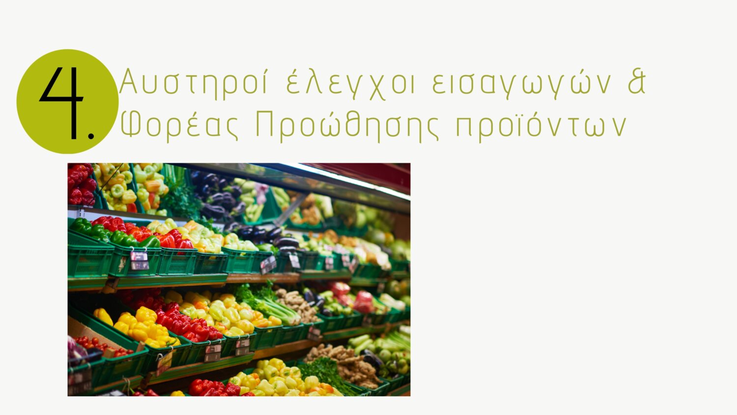 4ο) 4.1. Αυστηροί έλεγχοι για τις παράνομες ελληνοποιήσεις αγροτικών προϊόντων μέσω των υπαρχόντων μηχανισμών.