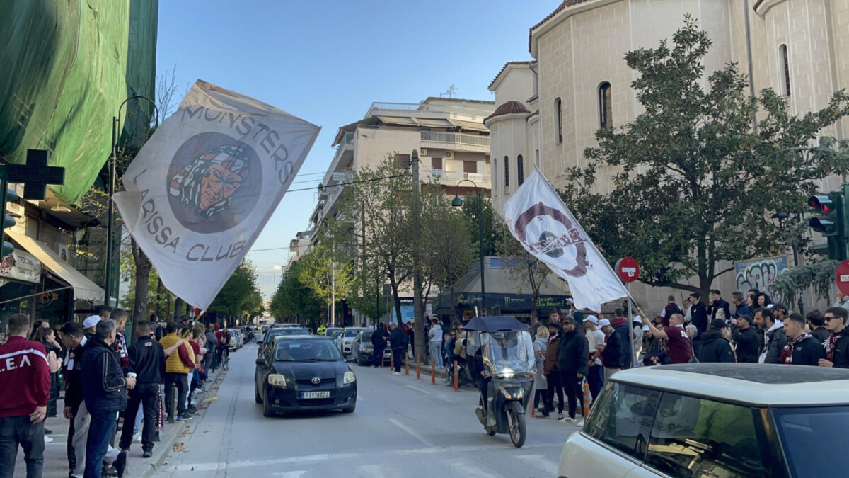 Στον Ι.Ν. του Αγίου Νικολάου έχουν συγκεντρωθεί οι φίλαθλοι της ΑΕΛ, περιμένοντας τους πρωταθλητές του 1ου Ομίλου της Super League 2.