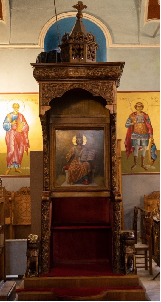 Ακριβώς στον ίδιο ρυθμό είναι κατασκευασμένο, σε μικρότερη κλίμακα και το ξύλινο σκαλιστό τέμπλο και ο Δεσποτικός θρόνος του ιερού ναού της Ζωοδόχου Πηγής Αργυροπουλίου (1884), και σε μικρότερη κλίμακα το σκαλιστό τέμπλο και ο Δεσποτικός θρόνος του ιερού ναού της Αγίας Τριάδας του Τυρνάβου (1877). Προφανώς, η ίδια συντεχνιακή ομάδα σκάλισε τα παραπάνω τέμπλα και των τριών Ιερών Ναών τα οποία διατηρούνται μέχρι και σήμερα.