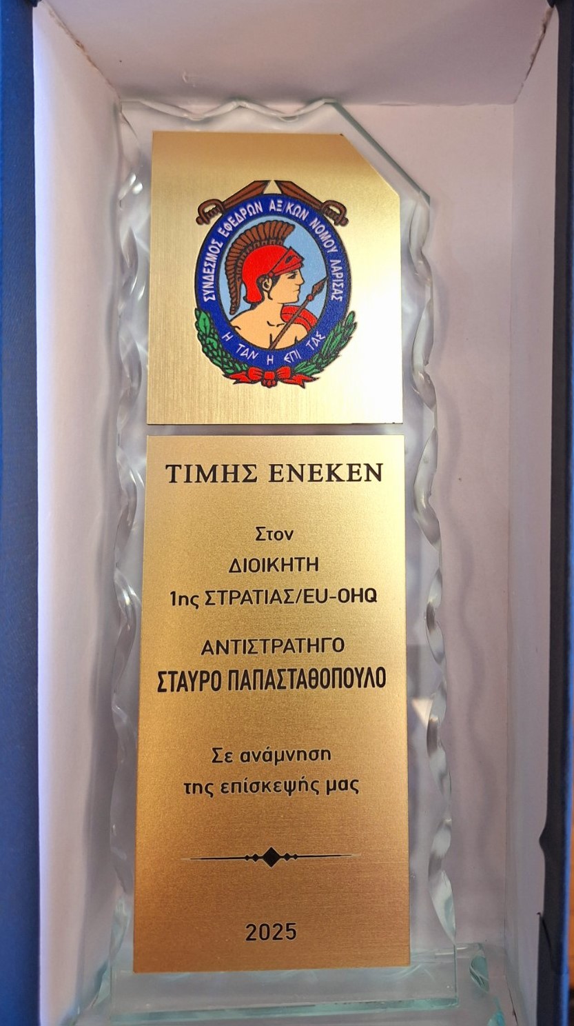 Ιδιαίτερη αναφορά έγινε στην πρόσφατη τελετή απονομής του βαθμού του Υπολοχαγού στον Δήμαρχο Λαρισαίων κο Μαμάκο Αθανάσιο, ο οποίος είναι επίσης μέλος του Συνδέσμου Εφέδρων. Η απονομή πραγματοποιήθηκε από τον ίδιο τον Διοικητή της 1ης Στρατιάς, παρουσία των μελών του Διοικητικού Συμβουλίου , σηματοδοτώντας την αναγνώριση της προσφοράς του Δημάρχου στις αξίες της εφεδρείας και την ενίσχυση της σχέσης μεταξύ της τοπικής αυτοδιοίκησης και των στρατιωτικών αρχών.