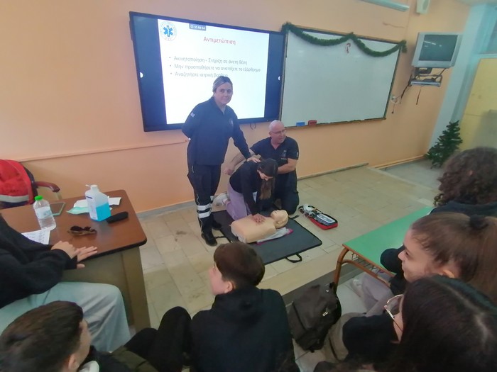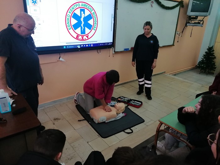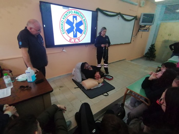 Τα μαθήματα πραγματοποιήθηκαν στον χώρο του σχολείου με τη συνεργασία εξειδικευμένων εκπαιδευτών από τον Ερυθρό Σταυρό Λάρισας και το ΕΚΑΒ. Οι μαθητές/-τριες, επιδεικνύοντας εξαιρετικό ενδιαφέρον, συμμετείχαν εθελοντικά παραμένοντας μετά τη λήξη των μαθημάτων, μία φορά την εβδομάδα, για να παρακολουθήσουν τις εκπαιδεύσεις.
