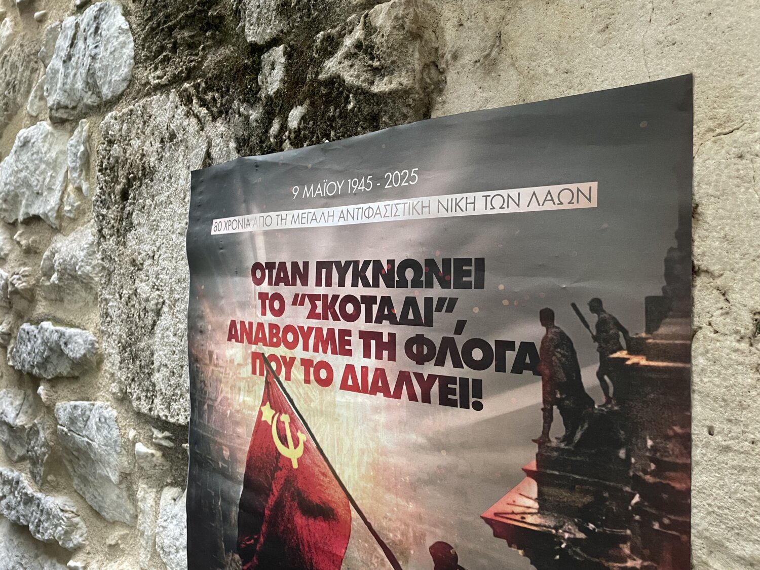 Κεντρικός ομιλητής ήταν ο βουλευτής Λάρισας του ΚΚΕ Γιώργο Λαμπρούλης, όπου και μίλησε για την 9η Μάη 1945 και τη συμπλήρωση 80 χρόνων, από την Αντιφασιστική νίκη των λαών με την άνευ όρων παράδοση των χιτλερικών στρατευμάτων.
