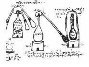 Αργότερα ασχολήθηκε και με την παρασκευή αλκοολούχων ποτών με απόσταξη που είχε τις ρίζες της από την αρχαιότητα. Στην περίοδο της Βυζαντινής Αυτοκρατορίας η συσκευή της αποστάξεως ονομάστηκε «λαμπίκος». Ο Διονύσιος Πύρρος ο Θετταλός γράφει το 1818 για τον άμβυκα: «’Αμπιξ ή Λαμπίκος» «Τούτο είναι εν όργανον χάλκινον, δια του οποίου λαμπικαρίζομεν διαφόρους ύλας, και τας μεταβάλλομεν εις ροώδη ή αεριώδη πνεύματα. Διαφόρως κατασκευάζονται αυτοί οι λαμπίκοι. Όσοι λαμπίκοι έχουσι μακρύν λαιμόν χρησιμεύουσιν εις το να λαμπικαρίζωμεν πλέον λεπτάς ύλας, και να τας μεταβάλλομεν εις πλέον οξέα πνεύματα».