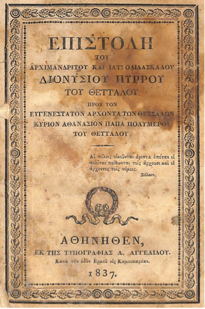 Με τα μέσα της εποχής το συγγραφικό έργο του αρχιμανδρίτη Διονυσίου Πύρρου μπορεί να θεωρηθεί τεράστιο. Στη σπουδαία «Φαρμακοποιία» του εντυπωσιάζουν τα καινούργια σχέδια και για την εποχή του τα εργαστηριακά όργανα προς παρασκευή των φαρμάκων. Σημαντικό ιστορικό ντοκουμέντο αποτελεί ο κατάλογος των συνδρομητών που αγόρασαν το σύγγραμμα για να επιτευχθεί η έκδοσή του. Μεταξύ αυτών οι Πατριάρχες Ιεροσολύμων και Αλεξανδρείας, δεκατέσσερις αρχιερείς, και είκοσι ιερείς διαφόρων οφικίων. Είναι μια ένδειξη πως υπήρχαν πολλοί κληρικοί που υποστήριζαν ενθέρμως τα επιστημονικά και τεχνολογικά επιτεύγματα της Δύσης. Οι λαϊκοί συνδρομητές είναι άνω των διακοσίων από όλα τα μέρη που υπήρχε Ελληνισμός.