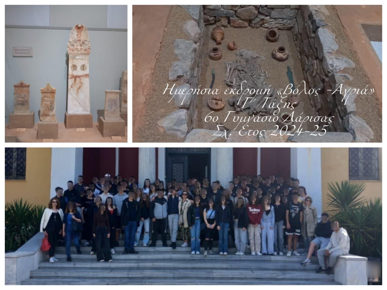 «Την Τετάρτη, 14-05-2025 η Γ΄ Τάξη Γυμνασίου του Σχολείου μας πραγματοποίησε ημερήσια εκδρομή στον Βόλο –Αγριά.