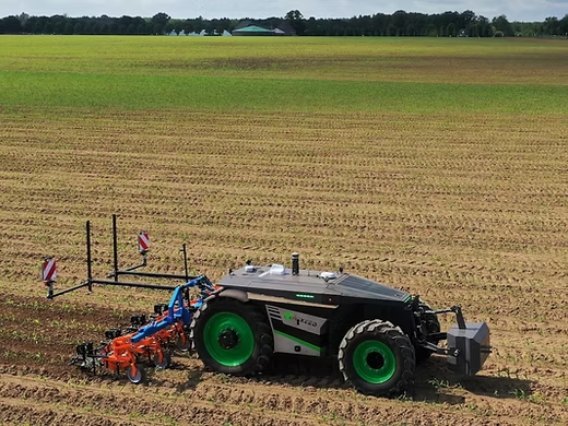 Ρομποτική και αυτόνομα συστήματα. Είναι ίσως μια από τις πιο εμφανείς εφαρμογές της τεχνητής νοημοσύνης στη γεωργία. Τα αυτόνομα οχήματα ή τα ρομπότ μπορούν να εκτελέσουν εργασίες έντασης εργασίας, όπως η συγκομιδή των καλλιεργειών, η σπορά, ακόμη και η παρακολούθηση των αγρών. Αυτά τα ρομπότ μπορούν να εργάζονται ακούραστα και με ακρίβεια, εκτελώντας εργασίες που θα απαιτούσαν σημαντική χειρωνακτική εργασία. Για παράδειγμα, βρίσκεται σε εξέλιξη έρευνα στο Πανεπιστήμιο Penn State για τη χρήση ρομπότ εξοπλισμένων με τεχνητή νοημοσύνη για την πλοήγηση σε οπωρώνες, το προσεκτικό αραίωμα των φρούτων ή το κλάδεμα οπωροφόρων δέντρων.