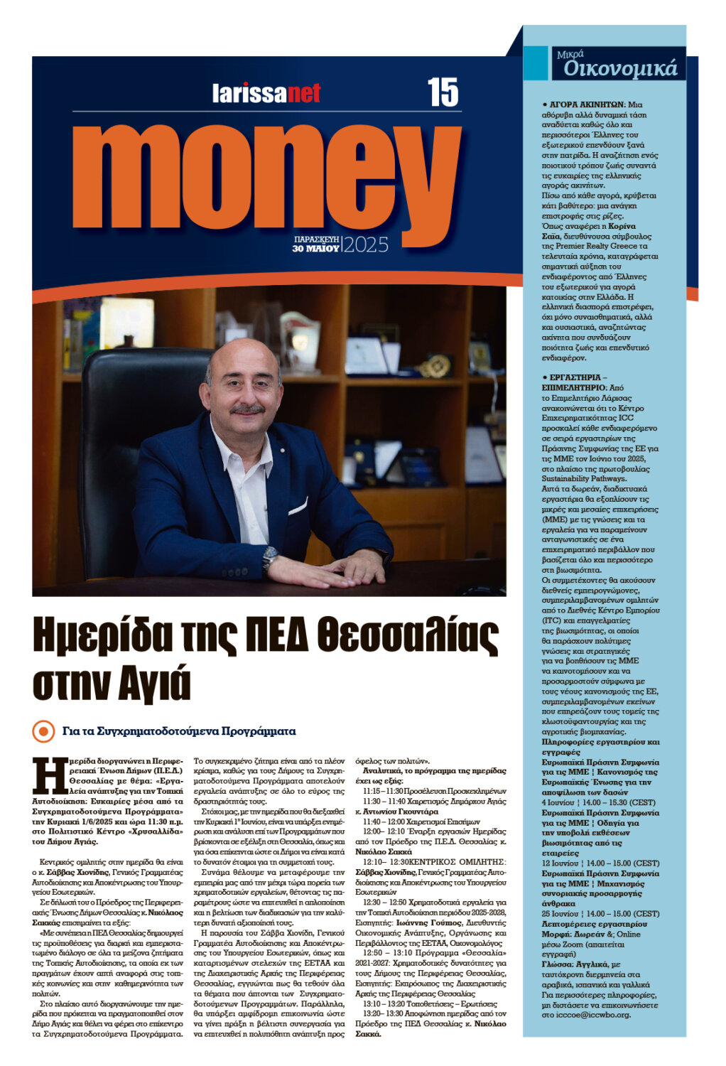 - Ηµερίδα της ΠΕ∆ Θεσσαλίας στην Αγιά. Για τα Συγχρηματοδοτούμενα Προγράμματα.