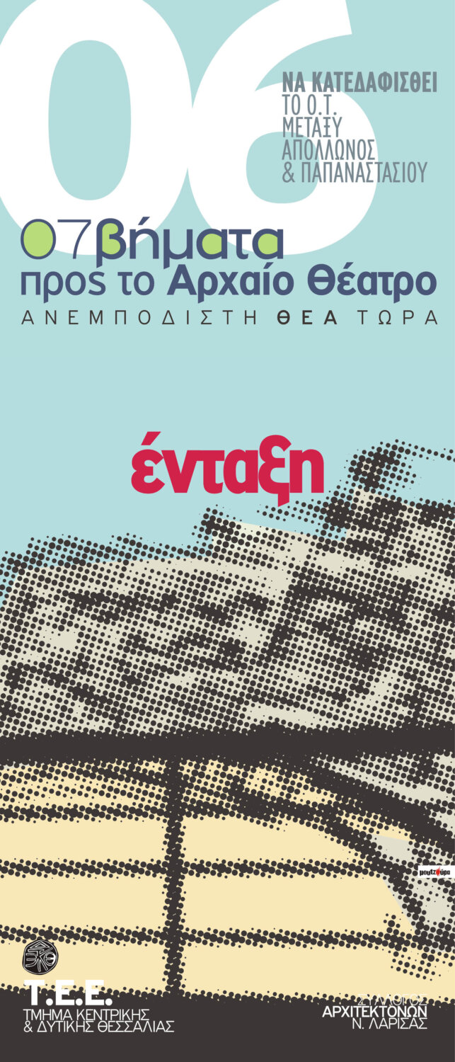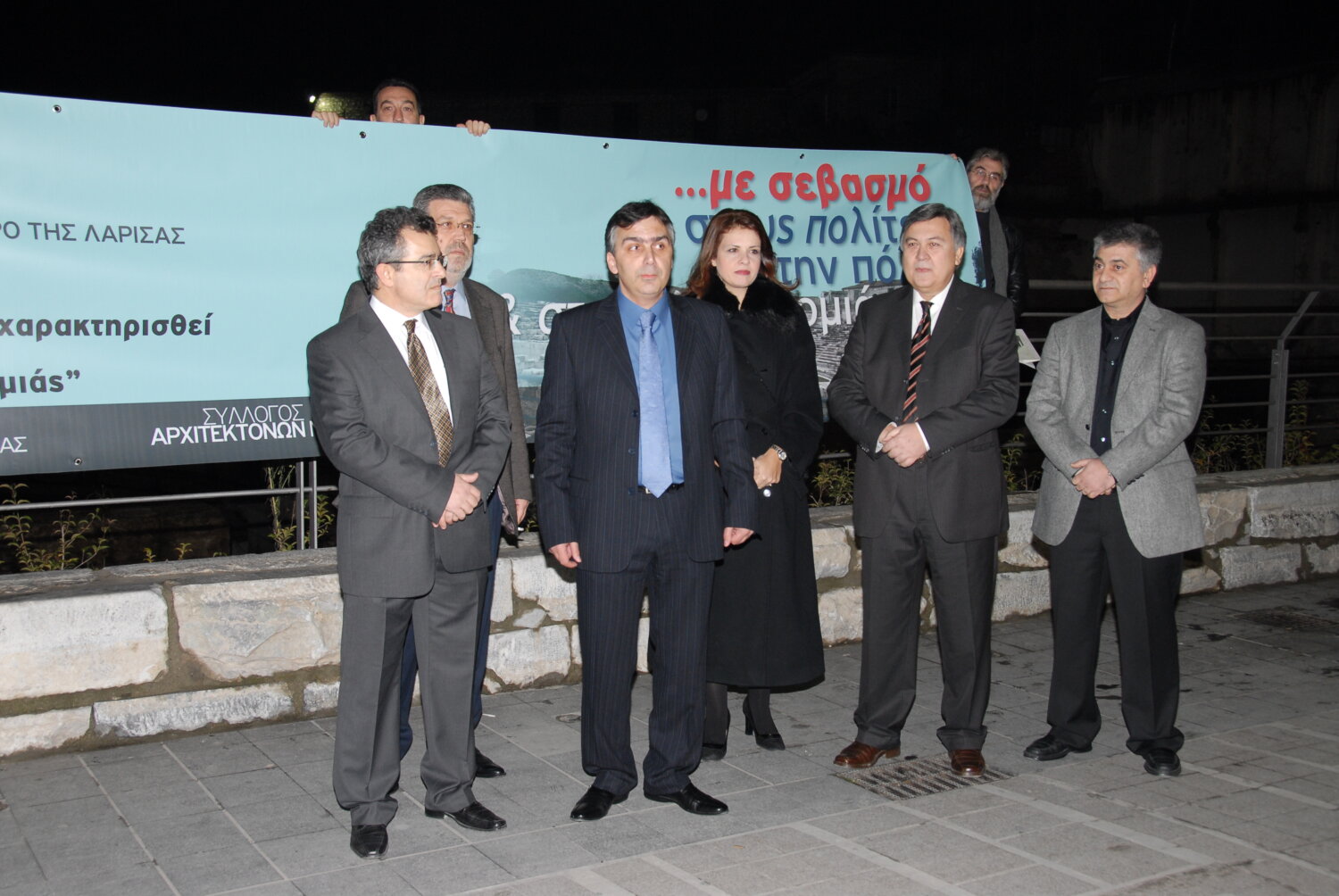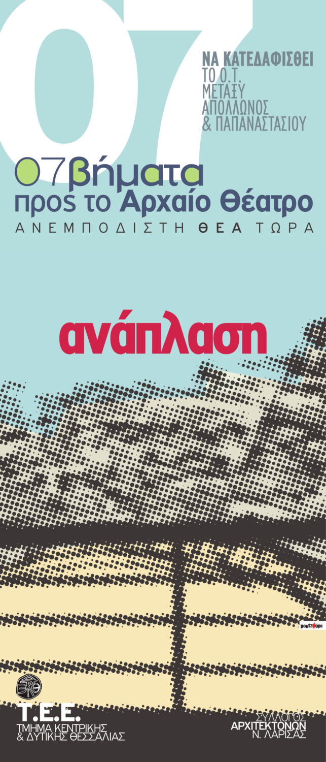 με κεντρικό θέμα : «ΔΙΑΜΟΡΦΩΣΗ ΕΛΕΥΘΕΡΩΝ ΔΗΜΟΣΙΩΝ ΧΩΡΩΝ – ΑΡΧΙΤΕΚΤΟΝΙΚΗ ΚΑΙ ΕΙΚΑΣΤΙΚΗ ΣΥΝΕΡΓΕΙΑ» κατατέθηκαν από το ΤΕΕ/ΤΚΔΘ και το Σύλλογο Αρχιτεκτόνων Λάρισας 7 «βήματα» με λέξεις «κλειδιά» σε 7 banners έξω από το χώρο της εκδήλωσης: