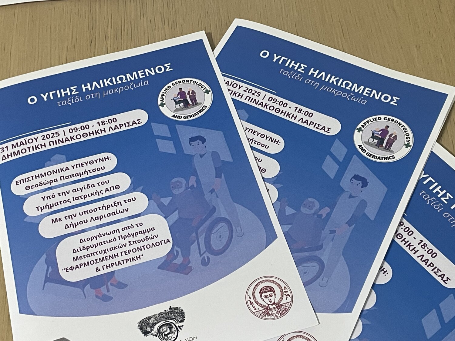 Η ημερίδα τελεί υπό την αιγίδα του Τμήματος Ιατρικής ΑΠΘ και γίνεται με την υποστήριξη του Δήμου Λαρισαίων, ενώ είναι διοργάνωση από το ΔΠΜΣ «Εφαρμοσμένη Γεροντολογία & Γηριατρική».