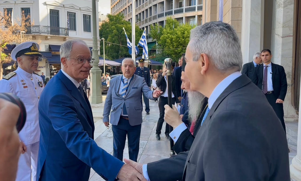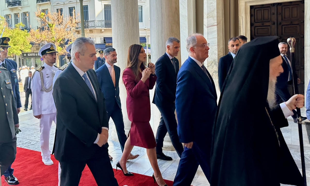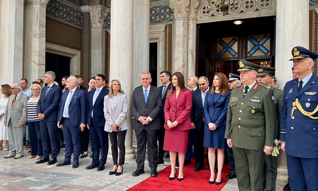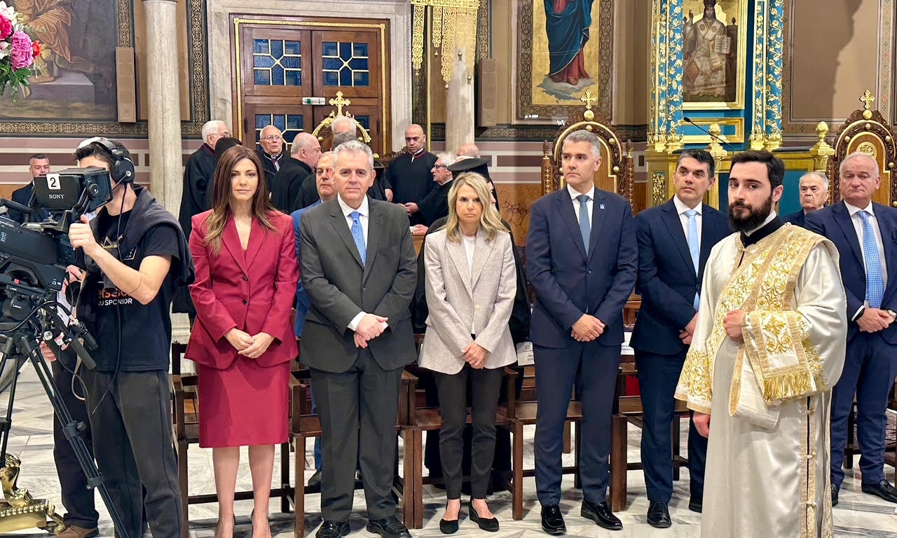 Η Θεία Λειτουργία τελέσθηκε παρουσία του Πρόεδρου της Δημοκρατίας κ. Κωνσταντίνου Τασούλα, της υπουργού Παιδείας κ. Σοφίας Ζαχαράκη και εκπροσώπων των πολιτικών, στρατιωτικών δυνάμεων και των σωμάτων ασφαλείας.