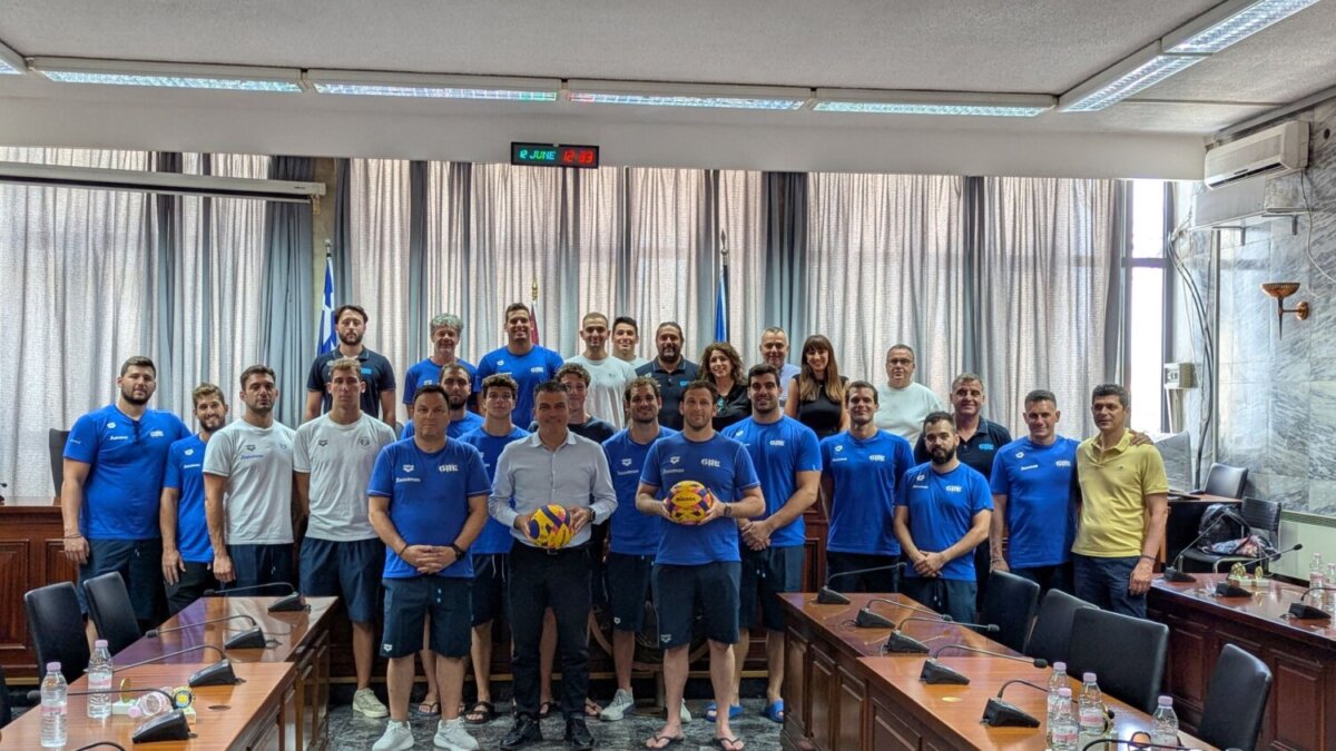 Τους αθλητές και το team της Εθνικής Ομάδας Υδατοσφαίρισης Ανδρών υποδέχθηκε ο Δήμαρχος Λαρισαίων, κ.Θανάσης Μαμάκος, λίγες μόνον ώρες πριν τη διεξαγωγή του φιλικού αγώνα με την Εθνική Ιταλίας, που πραγματοποιείται απόψε στη Λάρισα.