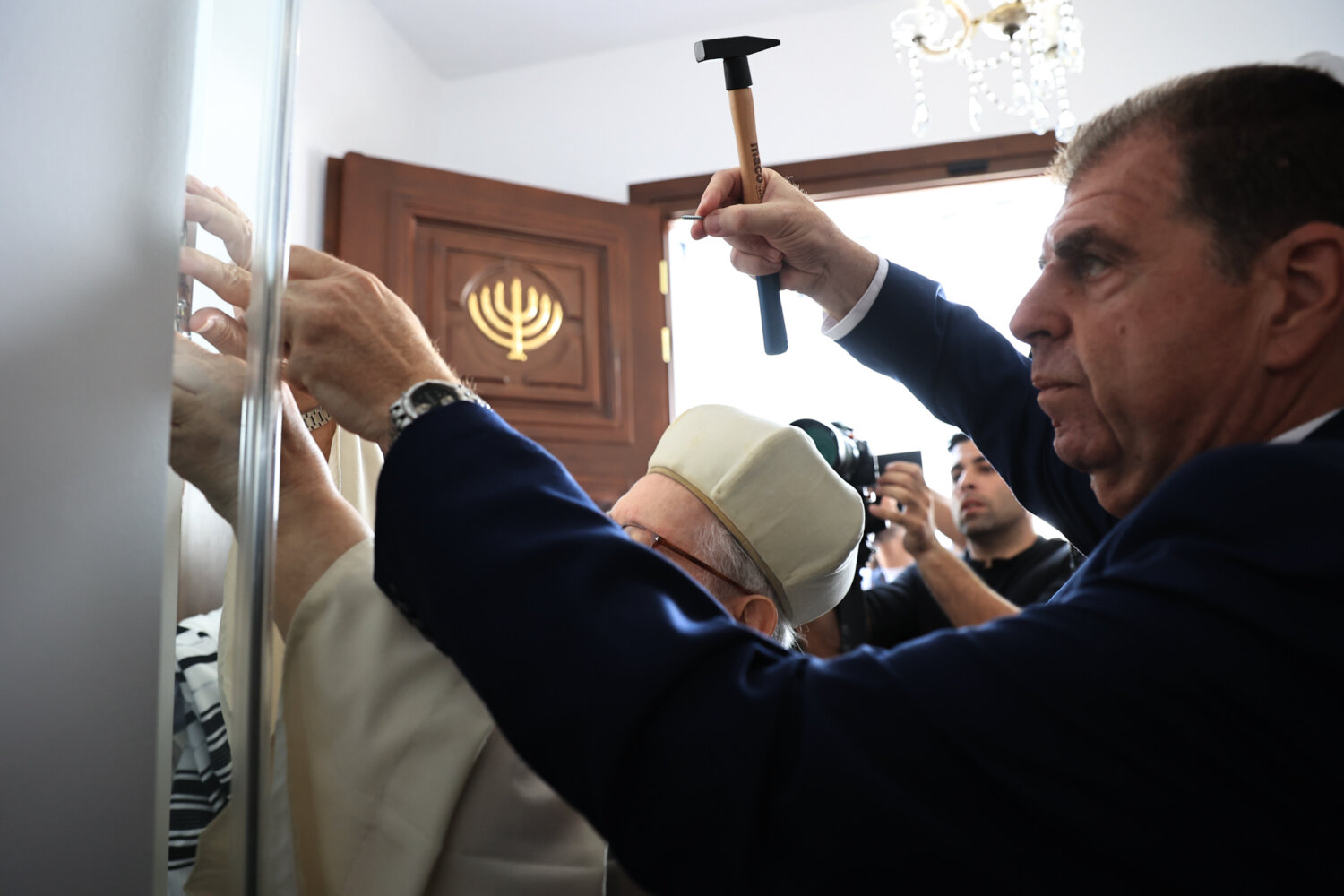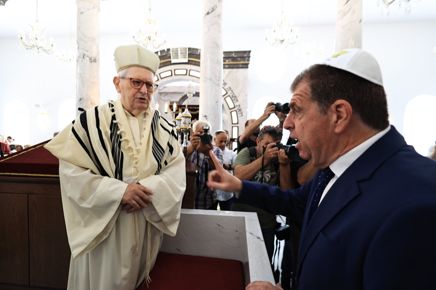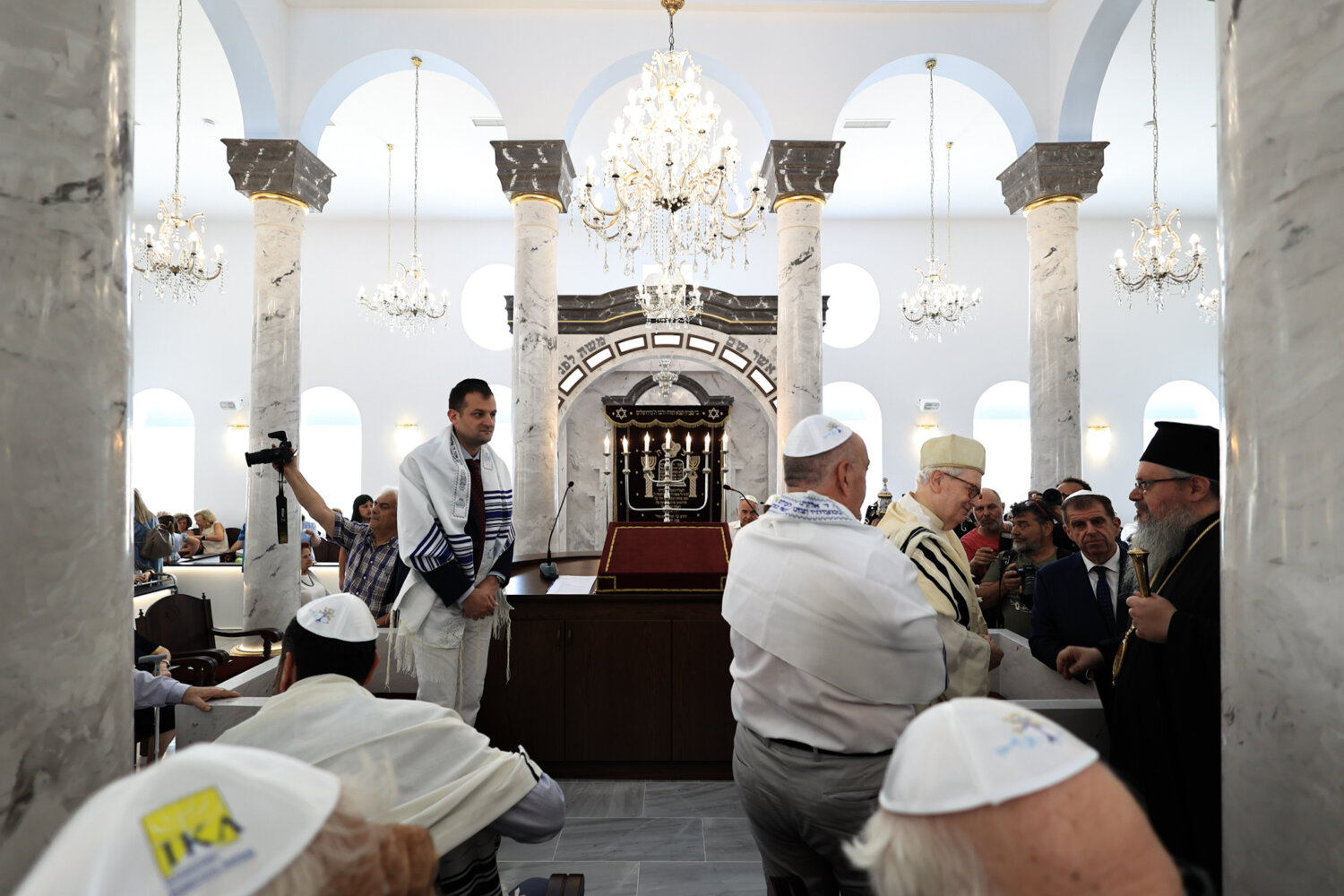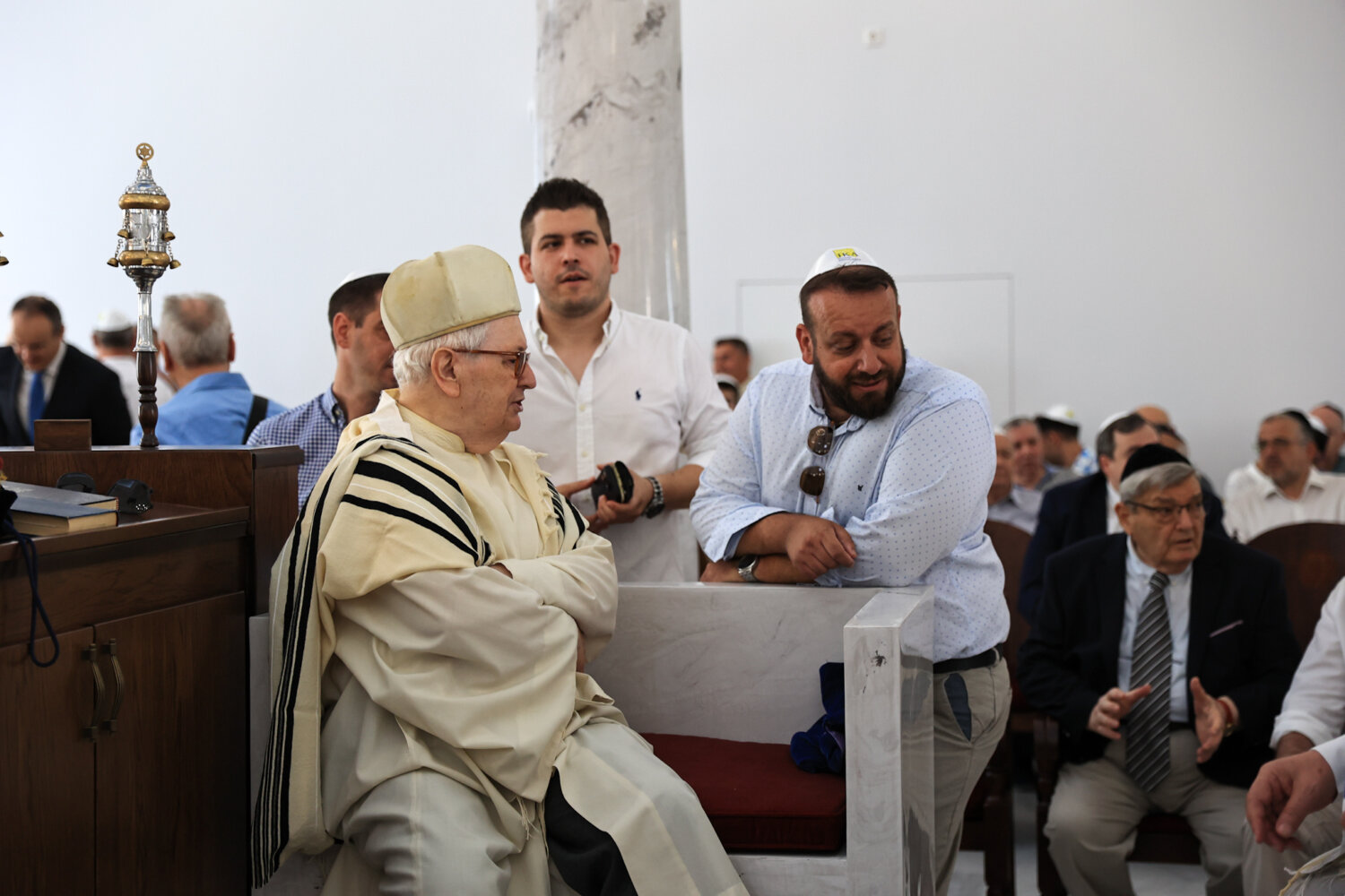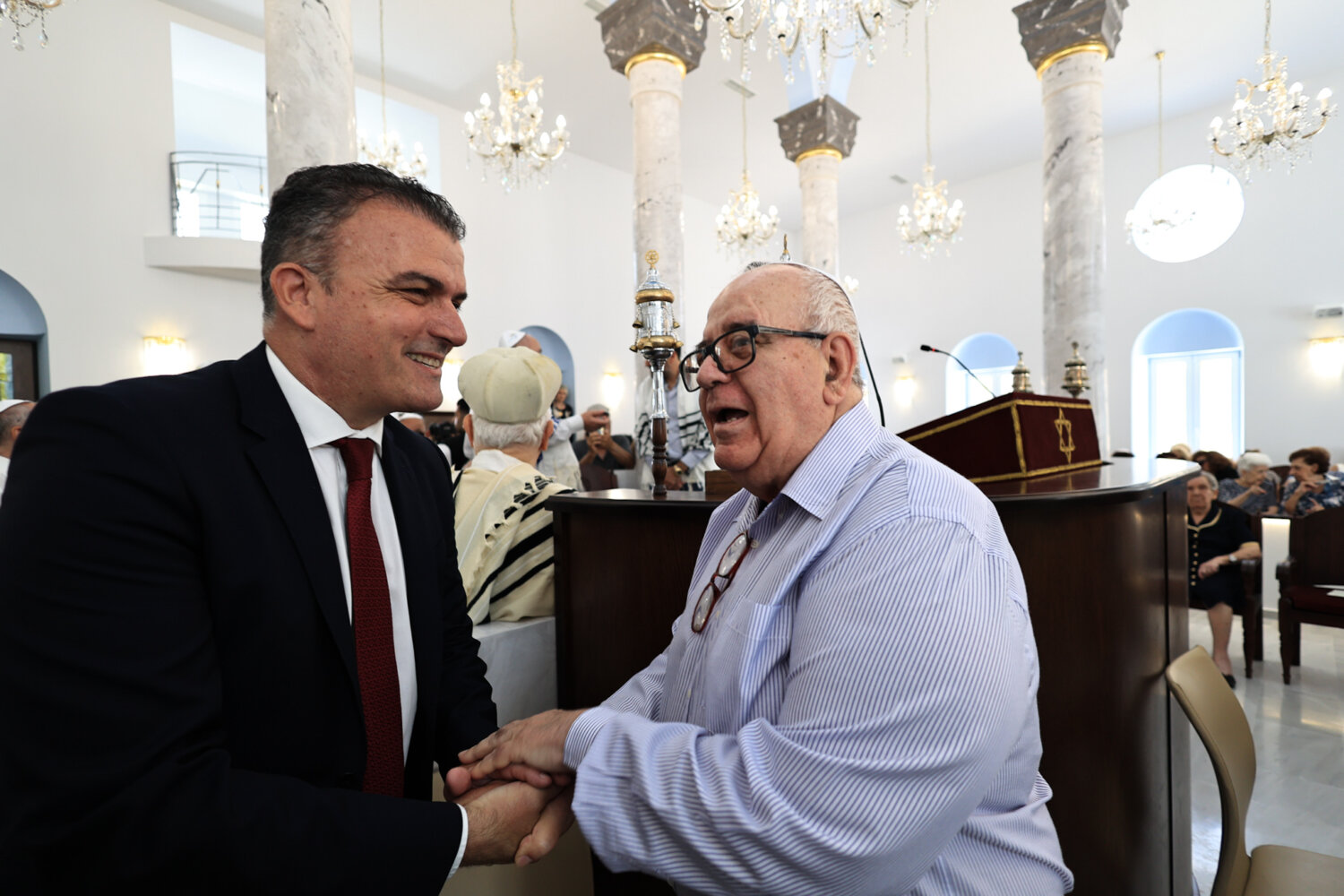 «Δεν είναι ένας απλός χώρος λατρείας των Εβραίων της Λάρισας, αλλά ένα μνημείο με μεγάλη ιστορική αξία για την πόλη μας. Είναι ένας χώρος πολιτισμού, εκπαίδευσης και διαλόγου, ανοιχτός και φιλόξενος για όσους θέλουν να τον επισκεφθούν», ανέφερε ο κ. Μανουάχ, ενώ σε ερώτηση που δέχθηκε για τις αντιδράσεις μερίδας πολιτών, αλλά και για τα μέτρα της ΕΛ.ΑΣ. επέλεξε να απαντήσει λέγοντας, «είμαστε Εβραίοι Έλληνες και Λαρισαίοι, όπου έχουμε μια γιορτή. Τα μέτρα είναι της αστυνομίας, εμείς ούτε παρεμβαίνουμε, ούτε υποδεικνύουμε».