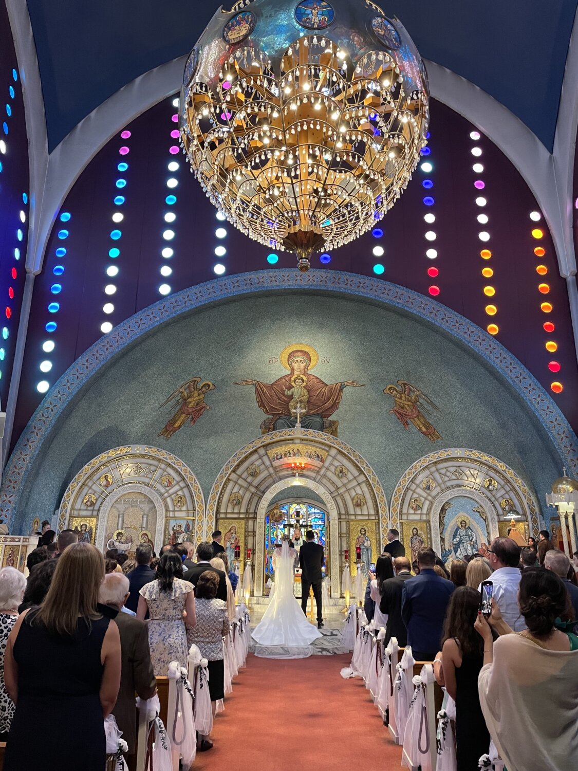 Το μυστήριο τελέστηκε στον Ελληνικό Ορθόδοξο Καθεδρικό του Αγ. Γεωργίου στο Μάντσεστερ, Νιου Χαμσάϊρ (ΗΠΑ), γενέτειρα πόλη της νύφης. Κουμπάροι ήταν τα αδέρφια της νύφης Κοσμάς και Ανδρέας Κούστας.