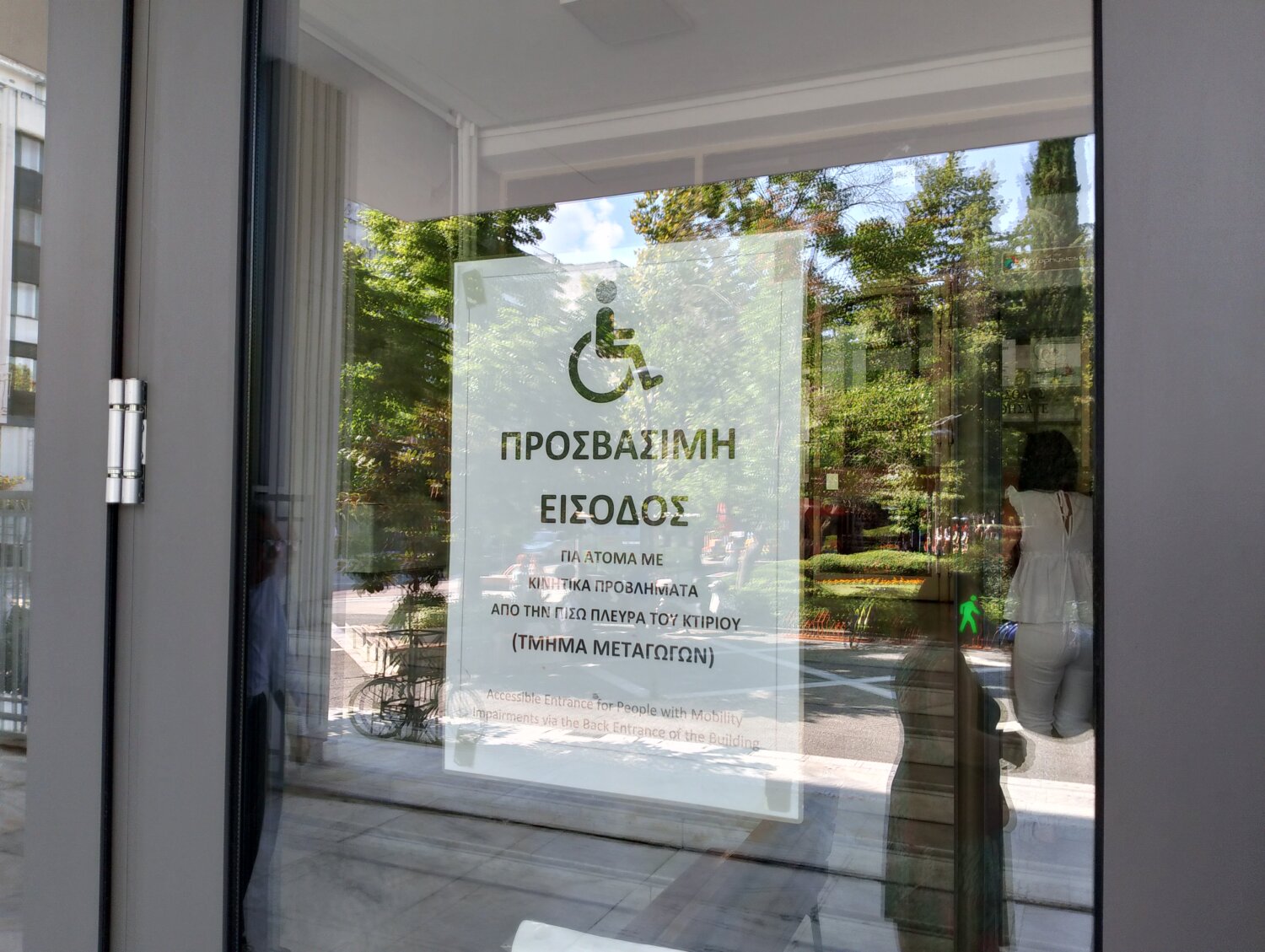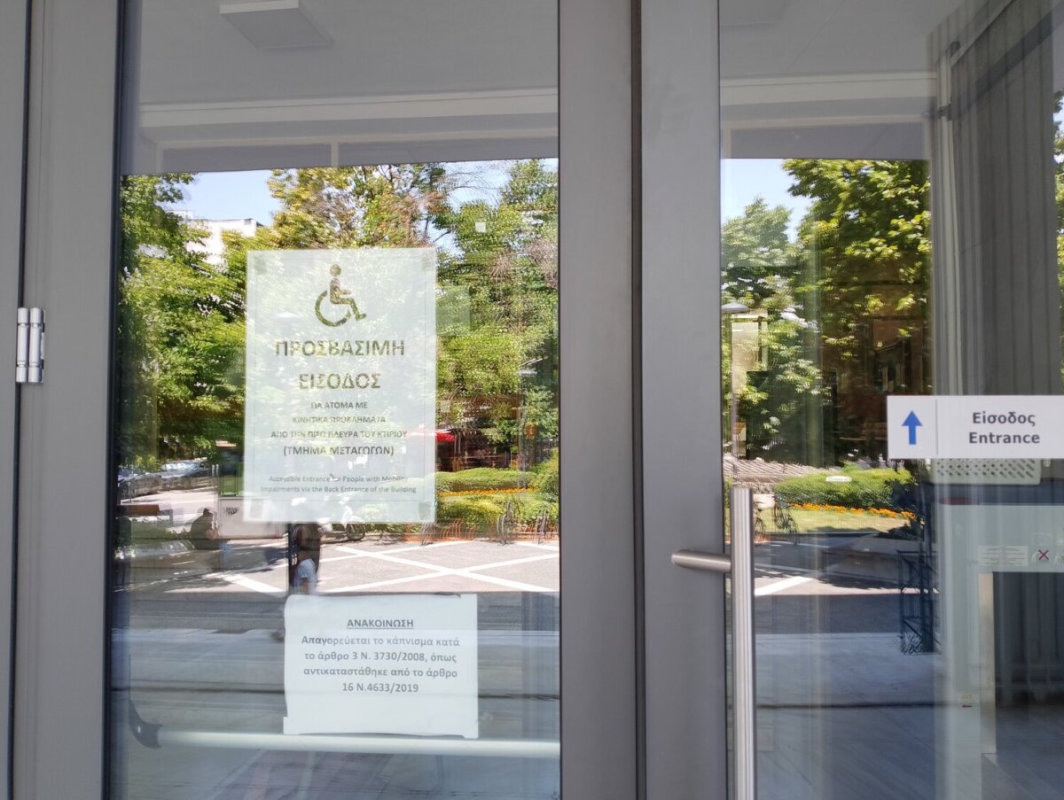 Από τη στιγμή που ράμπα δεν υφίσταται στην κεντρική είσοδο, η μόνη πρόσβαση γίνεται από το Μεταγωγών ωστόσο αρκετοί πολίτες φαίνεται να μην γνωρίζουν το συγκεκριμένο σημείο και μέχρι χθες δεν υπήρχε και κάποια ενημερωτική πινακίδα που να τους κατευθύνει προς τα εκεί.