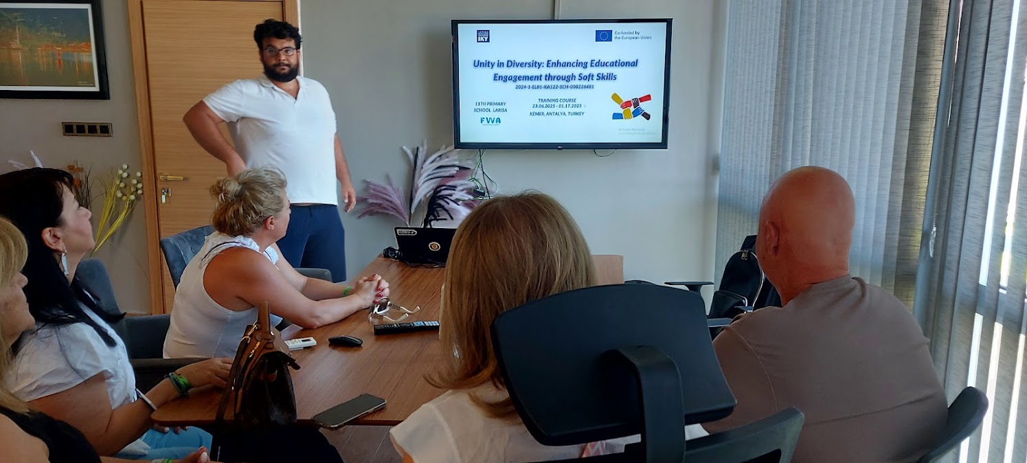 Στο πλαίσιο του ευρωπαϊκού προγράμματος Erasmus+ 2024-1-EL01-KA122-SCH-000226481 με τίτλο: «Unity in Diversity: Enhancing Educational Engagement through Soft Skills», το 11ο Δημοτικό Σχολείο Λάρισας συμμετείχε από τις 23 Ιουνίου έως την 1η Ιουλίου 2025 σε επιμορφωτικό σεμινάριο που πραγματοποιήθηκε στην Αττάλεια της Τουρκίας.