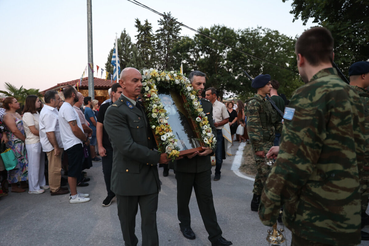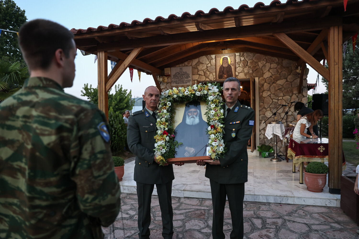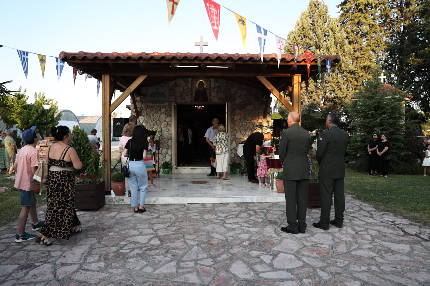 Κατά τη διάρκεια της σημερινής ημέρας τελέστηκε πανηγυρικός εσπερινός και ακολούθησε λιτάνευση της ιερής εικόνας εντός του στρατοπέδου, αρτοκλασία και θείο κήρυγμα.