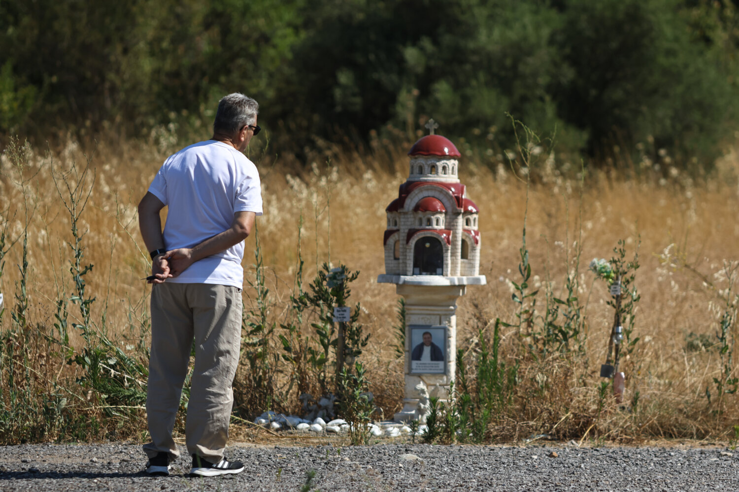 Με αφορμή την εορτή του Αγίου Παΐσίου, ο πάτερ Χριστόδουλος, πατέρας του Κυπριανού, ο οποίος έχασε τη ζωή του τη σιδηροδρομική τραγωδία στα Τέμπη, βρέθηκε σήμερα, Σάββατο 12 Ιουλίου στο σημείο όπου σημειώθηκε το δυστύχημα.