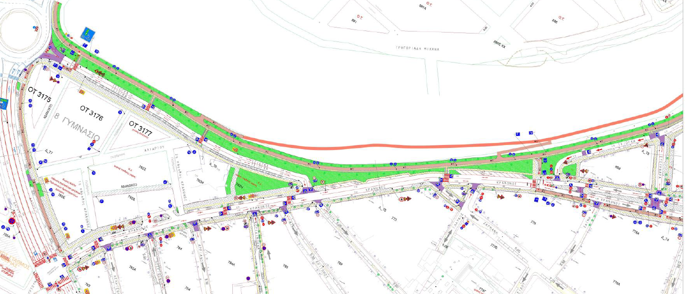 Παράλληλα ξεχωρίζει ο μεγάλος παραπήνειος ποδηλατόδρομος και η μελέτη για δεντροφυτεύσεις στο κομμάτι της διάνοιξης.