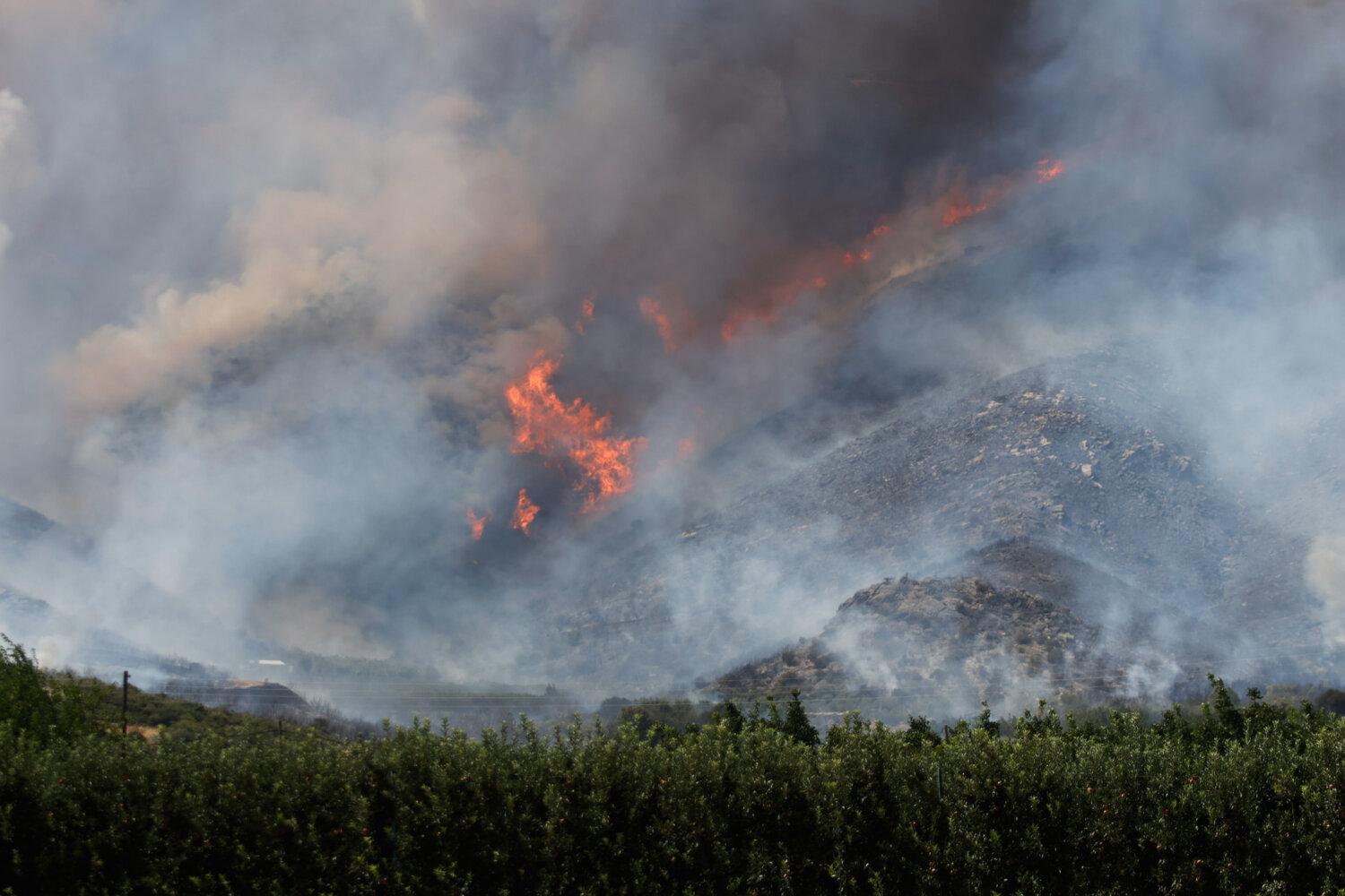 Συνεχίζονται οι «μάχες» εναέριων και επίγειων μέσων για την κατάσβεση της πυρκαγιάς που έχει ξεσπάσει στο Βαθύρεμα Αγιάς.