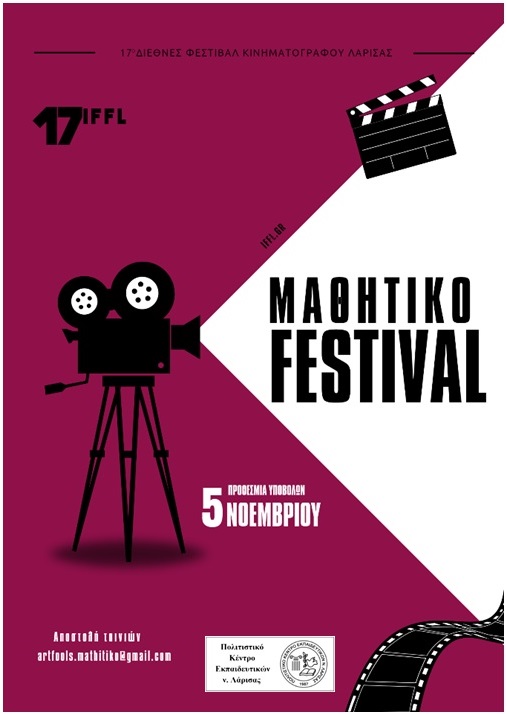 Αρχίζουν οι υποβολές για το 17ο Πανελλήνιο Μαθητικό Φεστιβάλ ταινιών μικρού μήκους Λάρισας – Artfools, το οποίο διοργανώνεται από το Διεθνές Κινηματογραφικό Φεστιβάλ Λάρισας – Artfools και την Περιφέρεια Θεσσαλίας, με τη στήριξη του Δήμου Λαρισαίων, του Γαλλικού Ινστιτούτου Λάρισας και του Πολιτιστικού Κέντρου Εκπαιδευτικών ν. Λάρισας. Η προθεσμία συμμετοχής λήγει στις 5 Νοεμβρίου 2025.