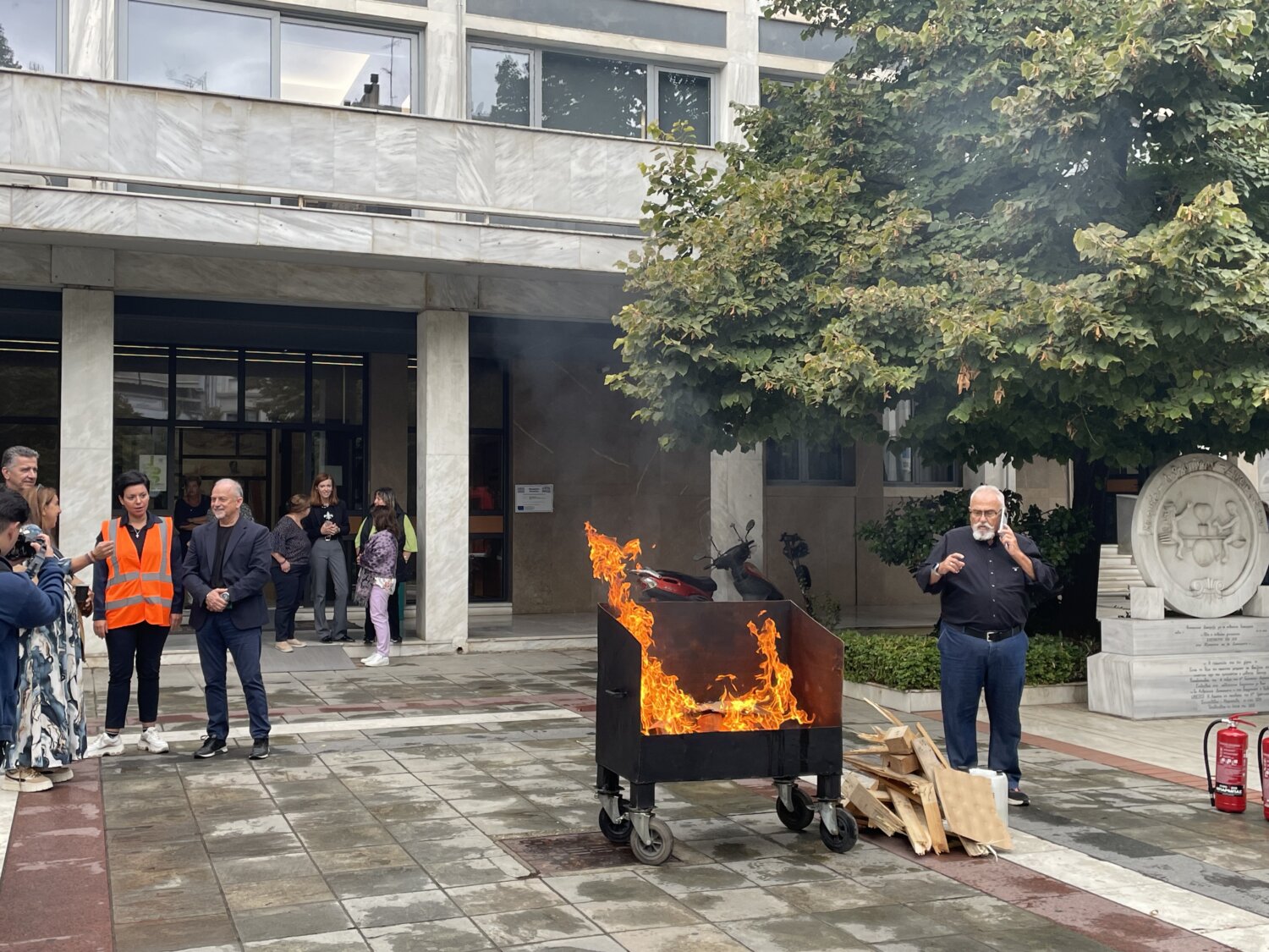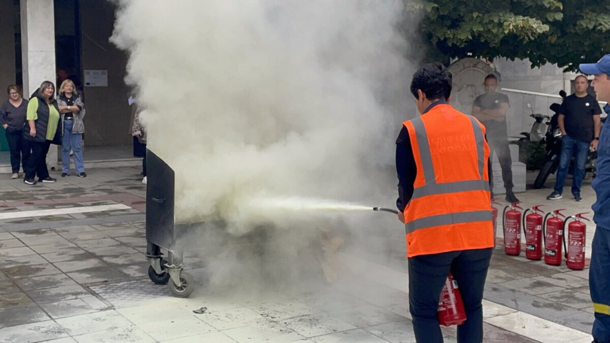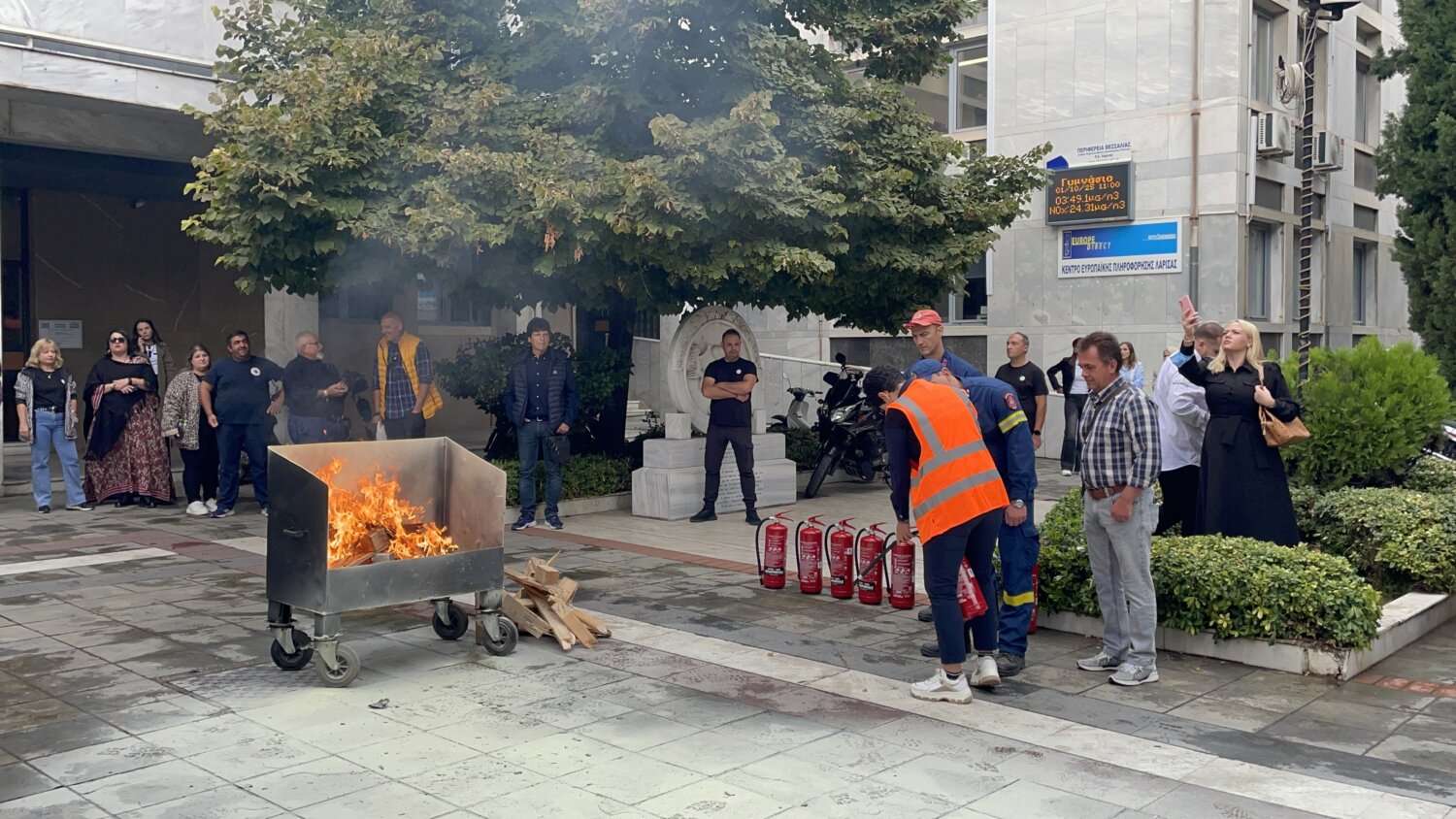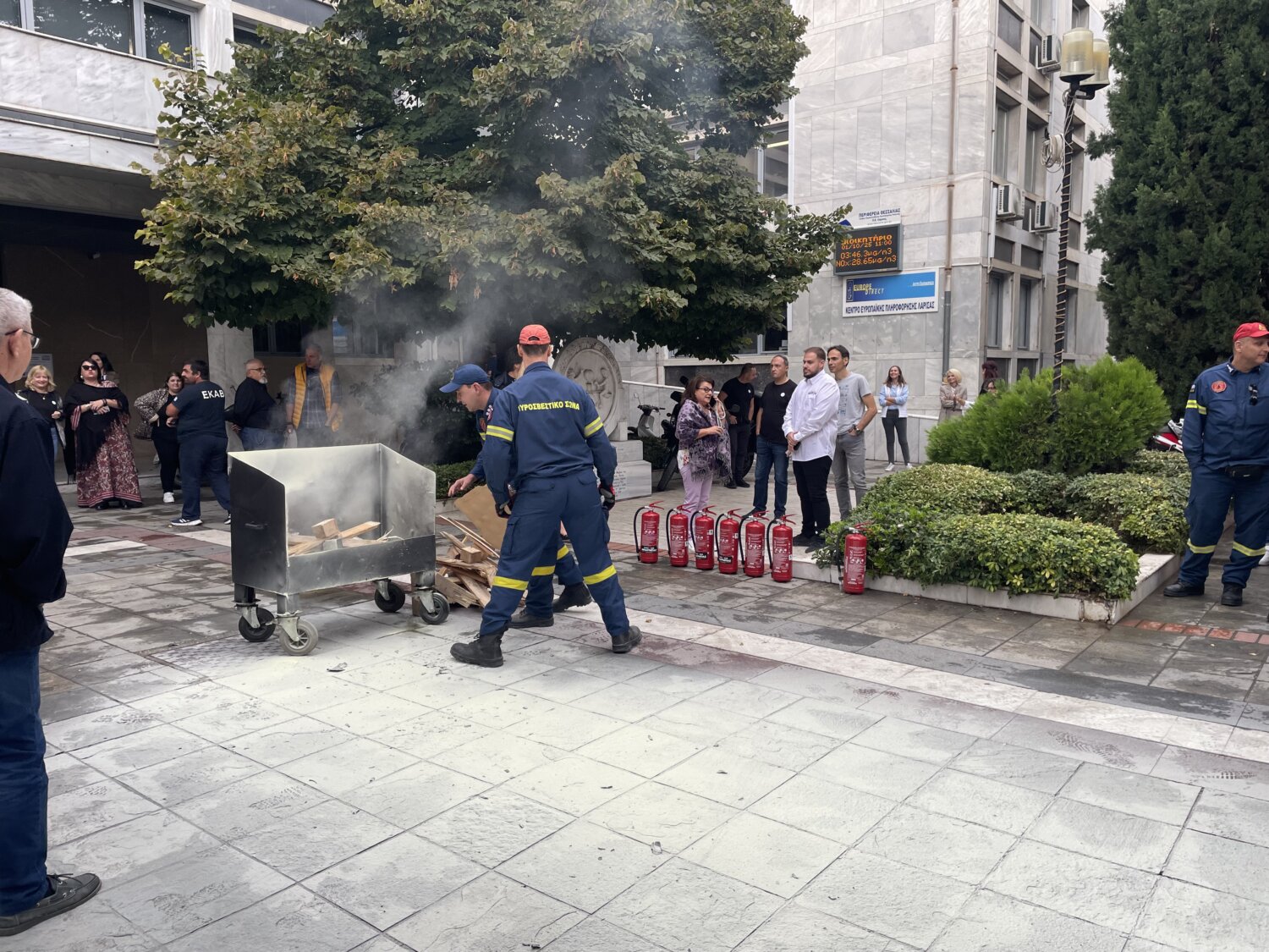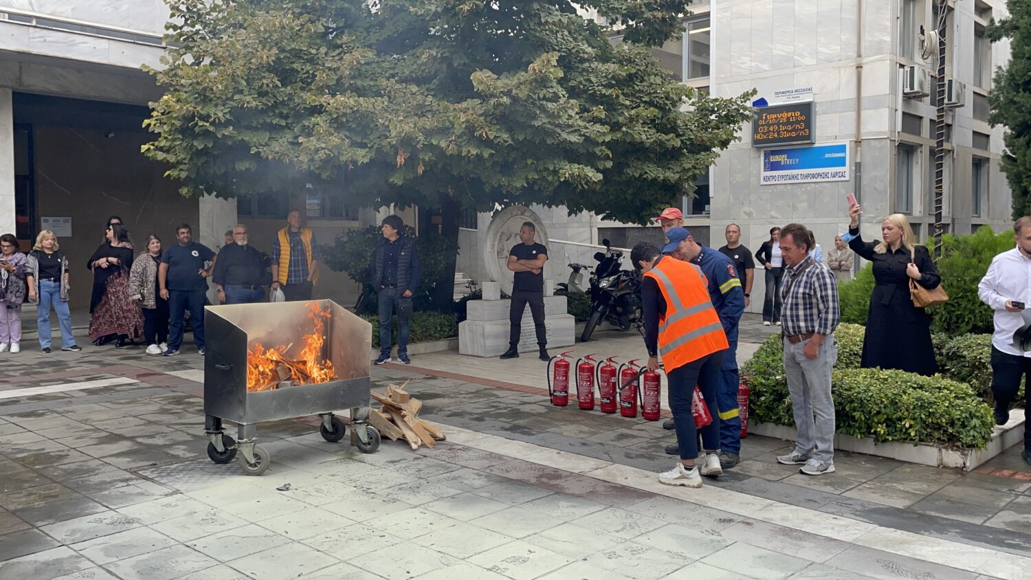 Επίδειξη στη χρήση πυροσβεστικών μέσων πραγματοποιήθηκε το πρωί της Τετάρτης έξω από το Διοικητήριο της Περιφέρειας Θεσσαλίας.