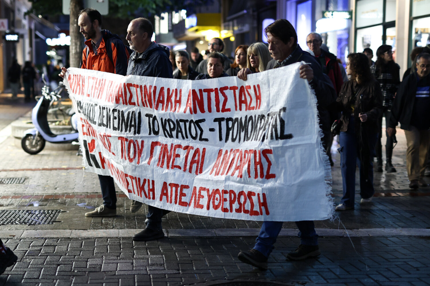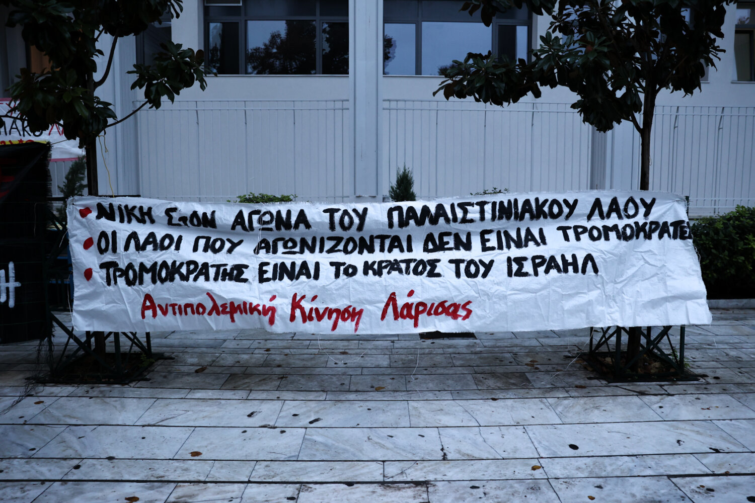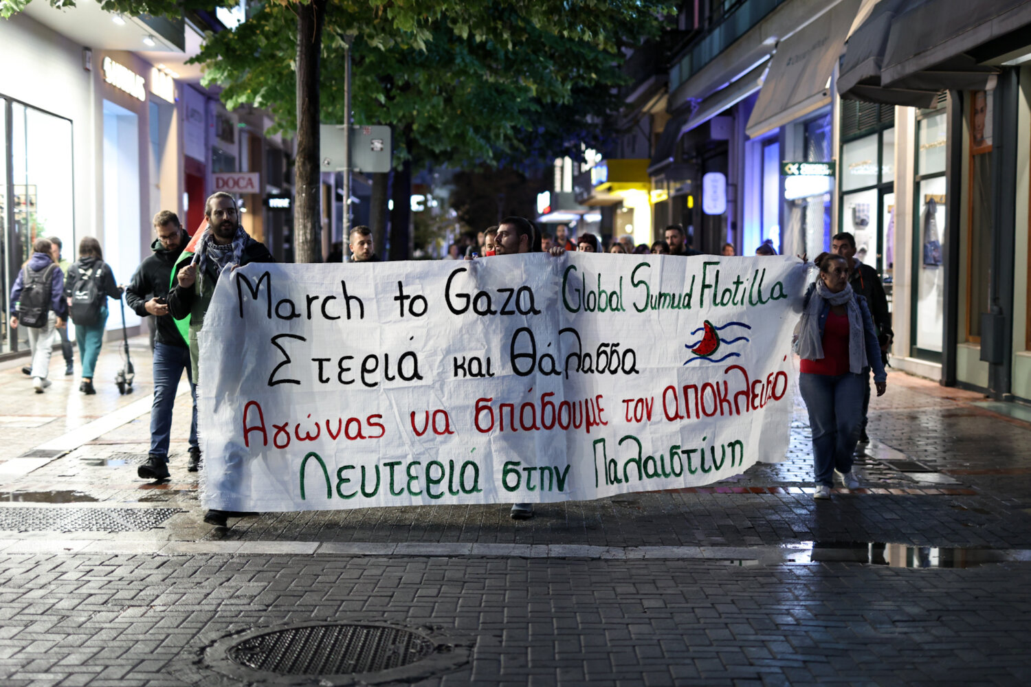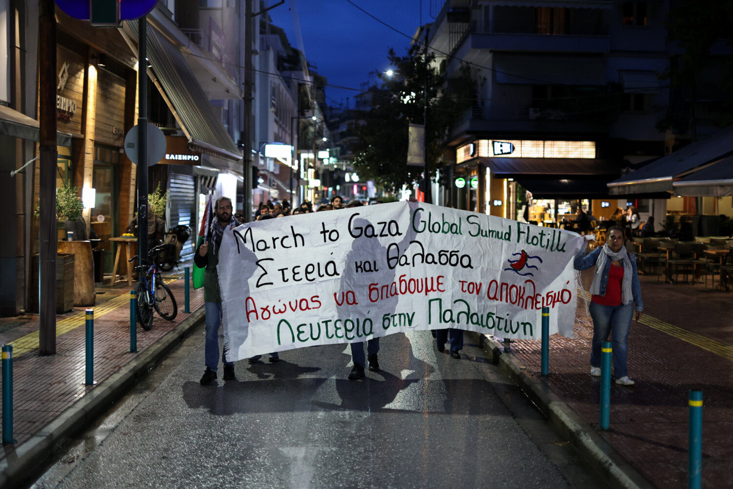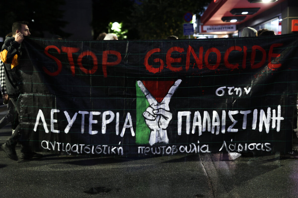 Στους δρόμους της Λάρισας βγήκαν διαδηλωτές, για την αναχαίτιση του Global Sumud Flotilla που έπλεε προς τη Γάζα.