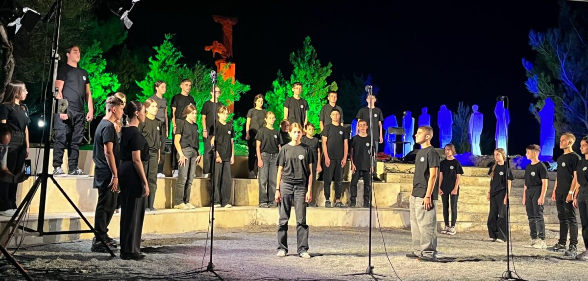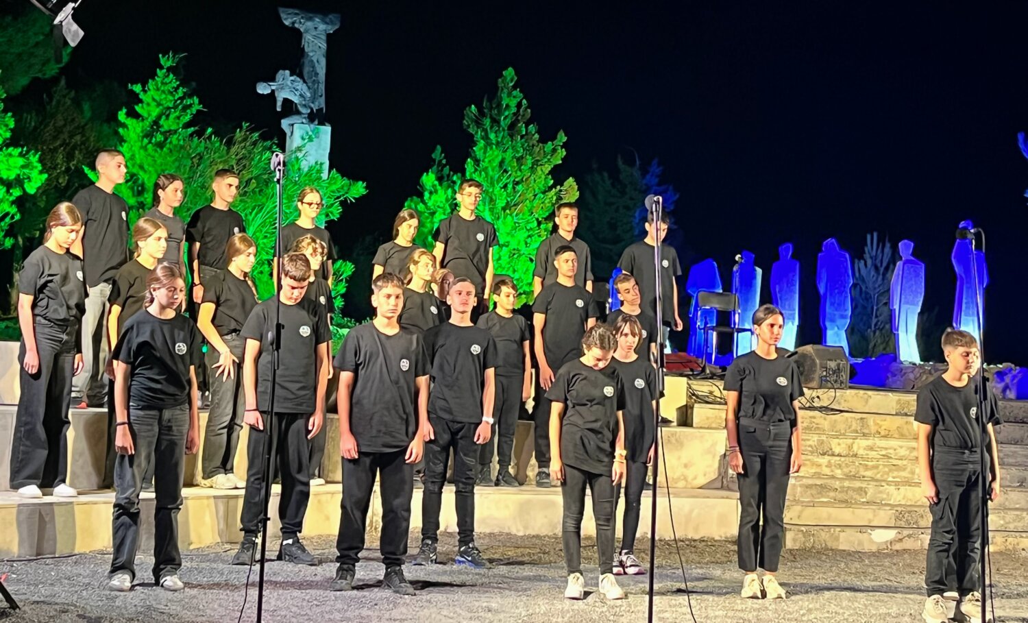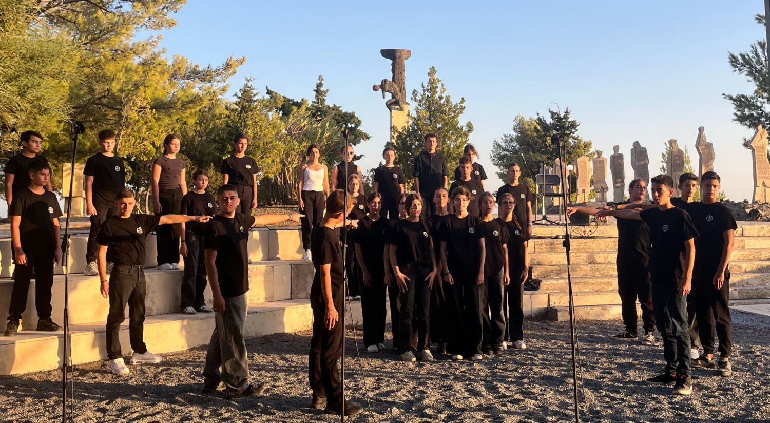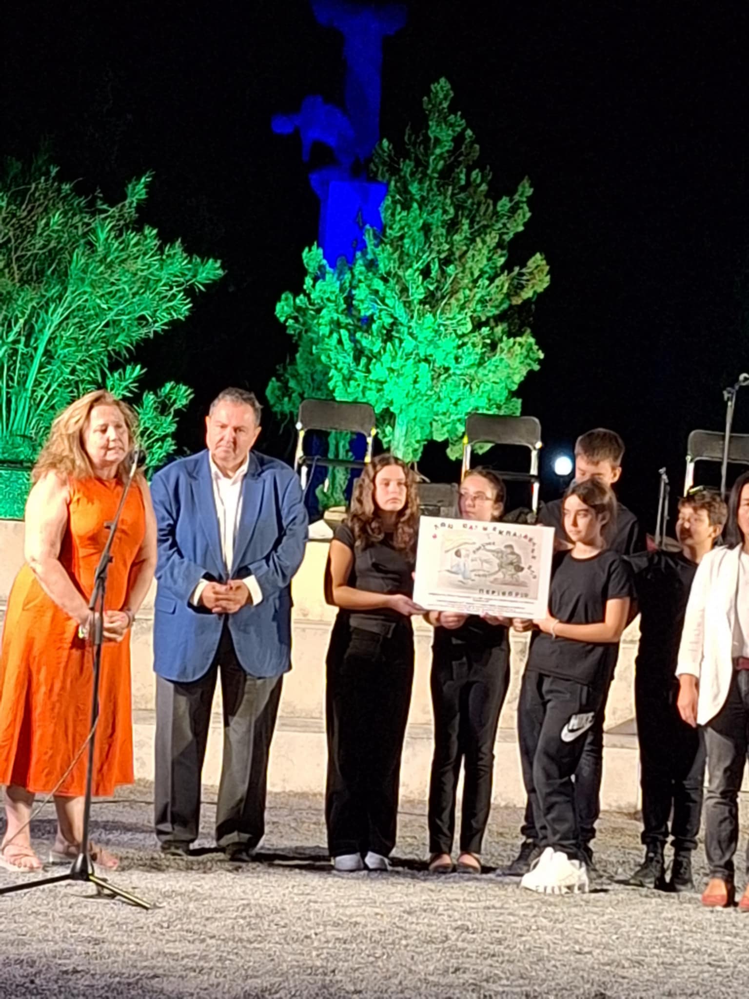 «Βλέπε, Άκου, Μίλα για τις βαρβαρότητες του Β’ παγκοσμίου πολέμου, για τους Μαρτυρικούς τόπους, για την Αντίσταση, για τους Αλύγιστους»: Ήταν το μήνυμα που μεταδόθηκε μέσω του θεατρικού, το οποίο παρουσίασαν μαθητές και μαθήτριες του 5ου Γυμνασίου και του 5ου Λυκείου Λάρισας, σε συνεργασία με το Γυμνάσιο Βιάννου Κρήτης, σε εκδήλωση στο Πανδημοτικό Ηρώο Αμιρά, το Σάββατο 13 Σεπτεμβρίου 2025, τιμώντας τα 82 χρόνια από το Ολοκαύτωμα των χωριών της Βιάννου και της Δυτικής Ιεράπετρας.