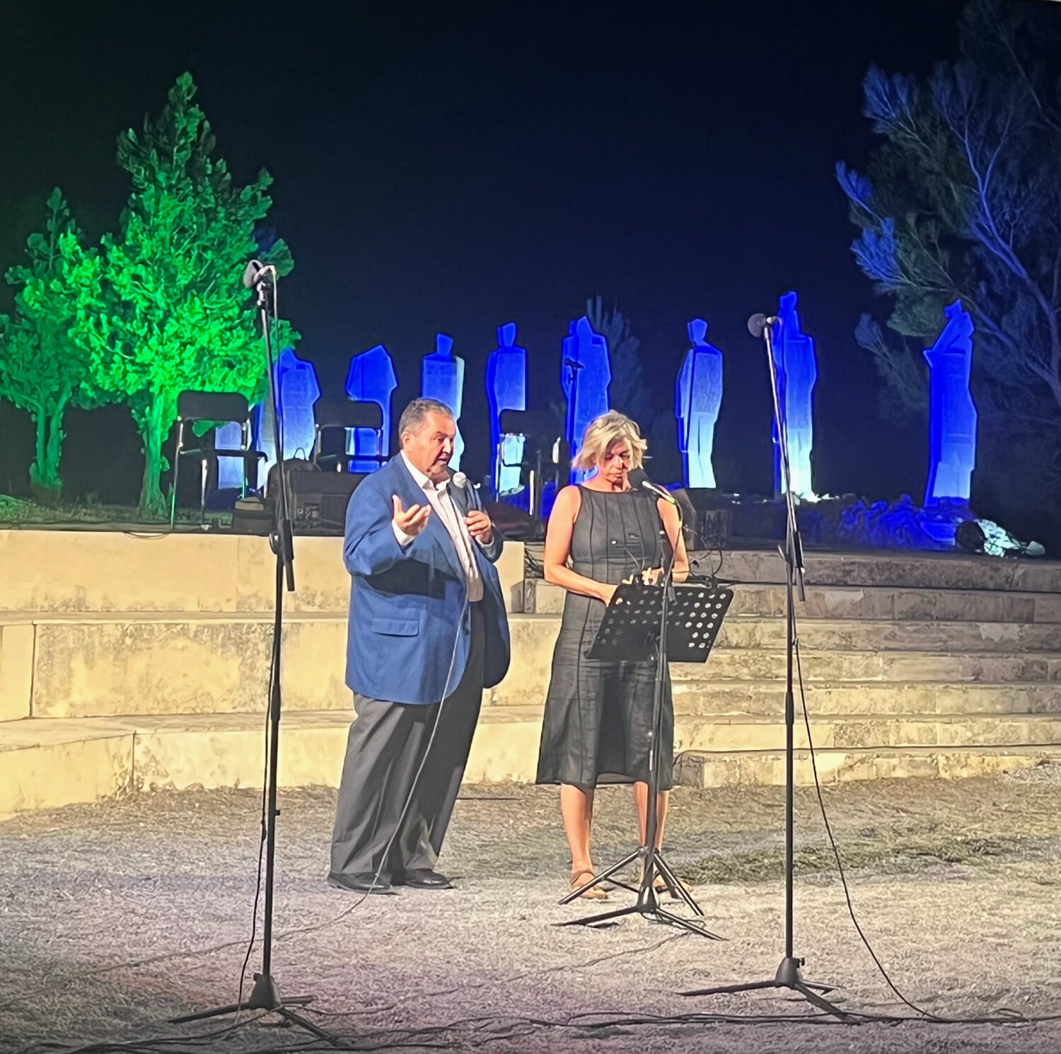 Η διευθύντρια του 5ου Γυμνασίου Λάρισας Ζωή Δεληζώνα υπογράμμισε ότι η τέχνη στην εκπαίδευση μπορεί να λειτουργήσει ως γέφυρα ανάμεσα στο παρελθόν και το μέλλον, ανάμεσα στους νεκρούς που δεν πρόδωσαν ποτέ και στους νέους που δεσμεύονται να μην αφήσουν τη λήθη να κυριαρχήσει.