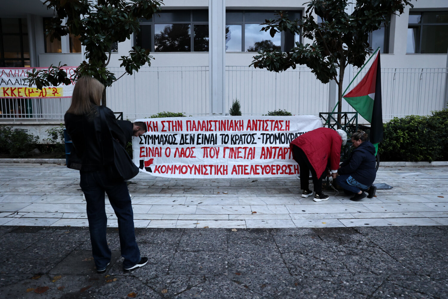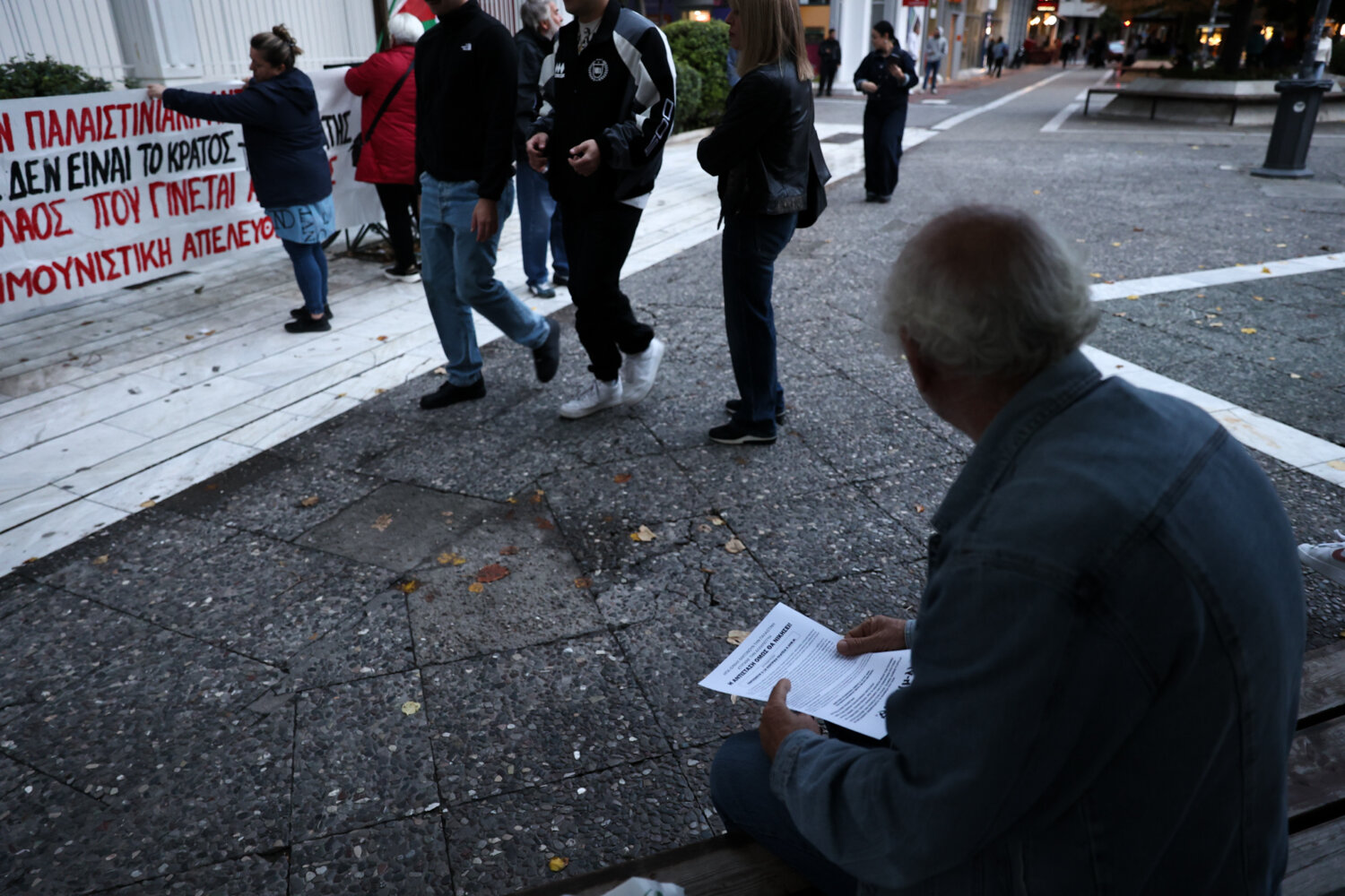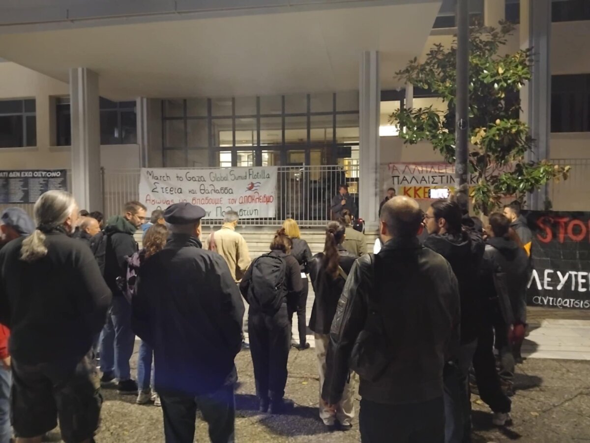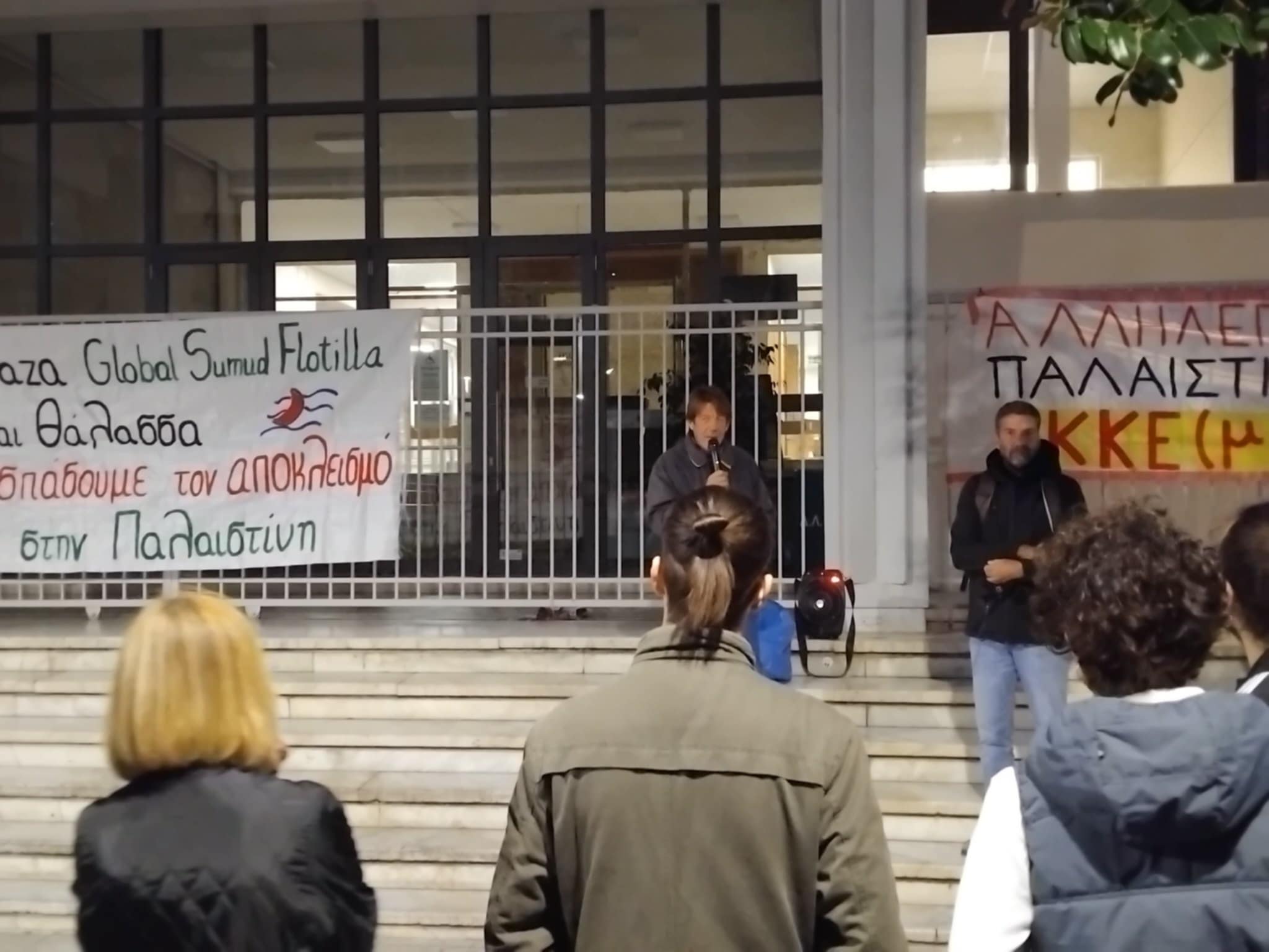 Η Αντιπολεμική Κίνηση Λάρισας πραγματοποίησε και σήμερα στην Κεντρική Πλατεία της Λάρισας σε συγκέντρωση αλληλεγγύης στο στόλο του Global Sumud Flotilla και του Παλαιστινιακού λαού.