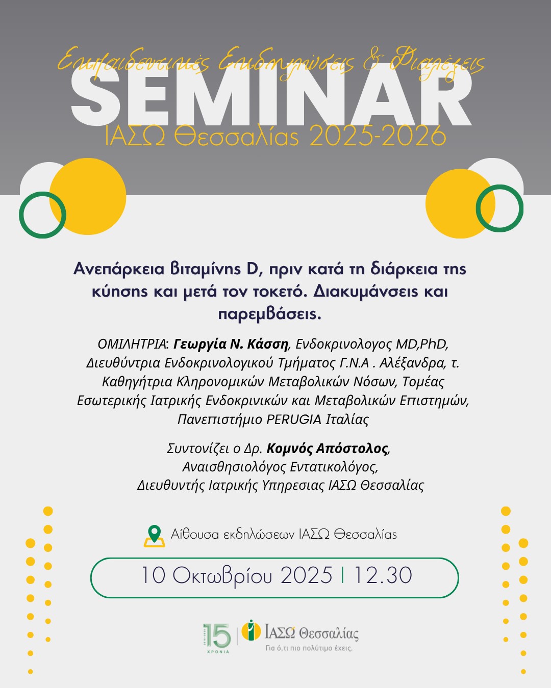 Το ΙΑΣΩ Θεσσαλίας ξεκινά το νέο κύκλο Επιστημονικών Διαλέξεων 2025-2026!