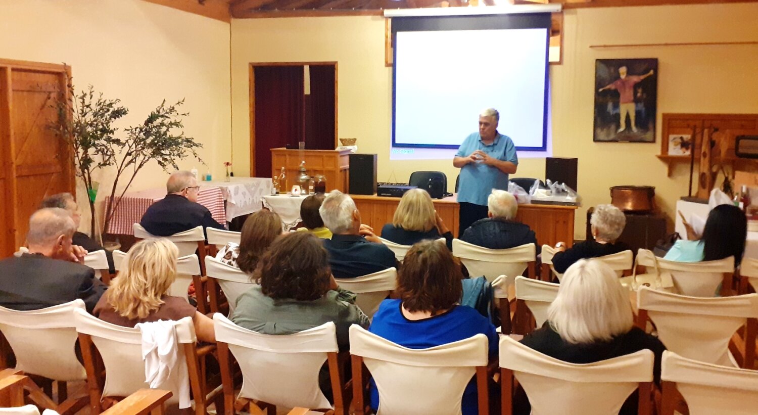 Οι οικοδεσπότες, Κώστας και Δέσποινα Συρμακέζη υποδέχθηκαν εγκάρδια τους φιλοξενούμενους και τους ξενάγησαν στους χώρους του Μουσείου, το οποίο είναι ένας πολυχώρος Προσομοίωσης Παραδοσιακών Αγροτικών Δραστηριοτήτων, όπου δίνεται η δυνατότητα στους επισκέπτες να «ζήσουν» την εμπειρία του παρελθόντος, συνδυασμένη με τη σύγχρονη τεχνολογία οπτικοακουστικών προβολών.