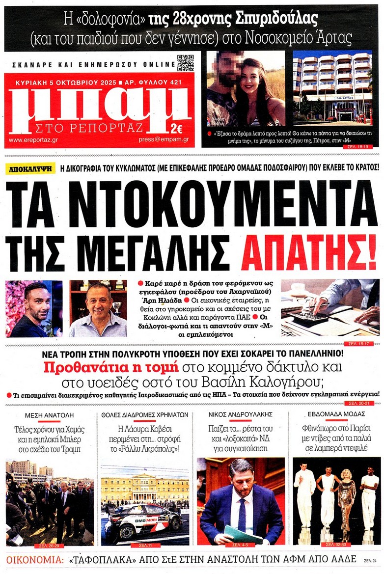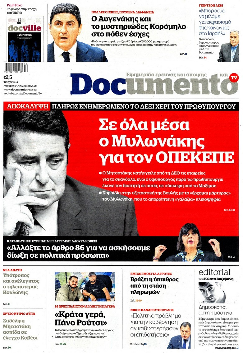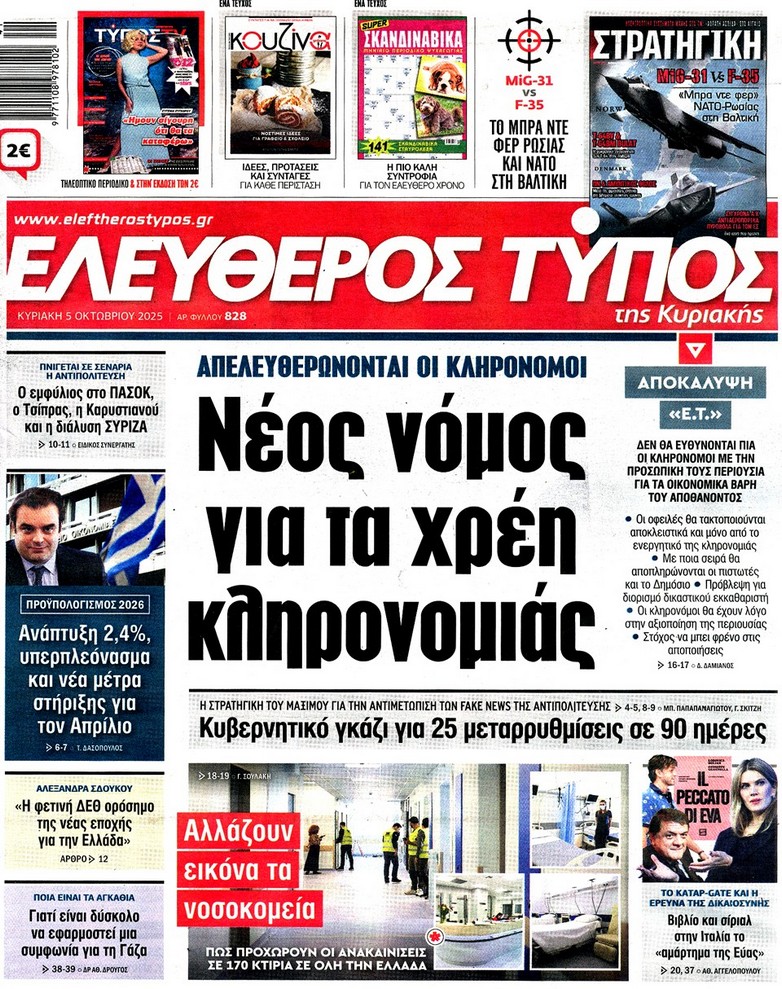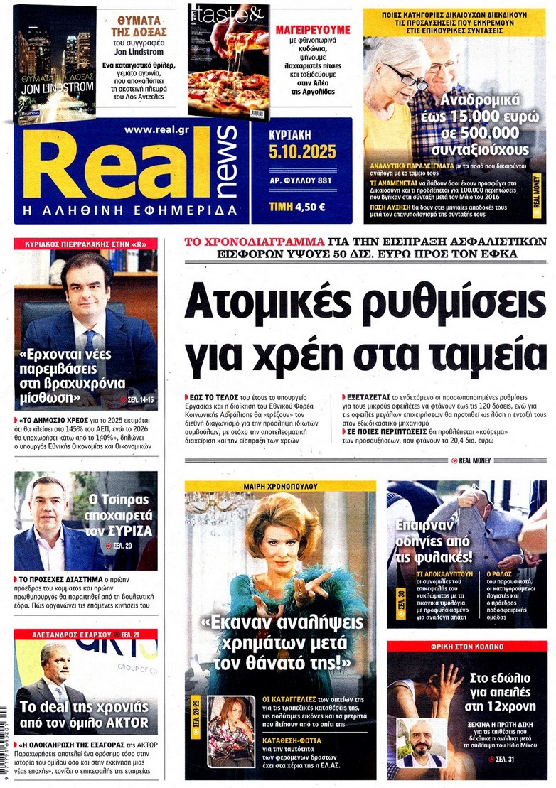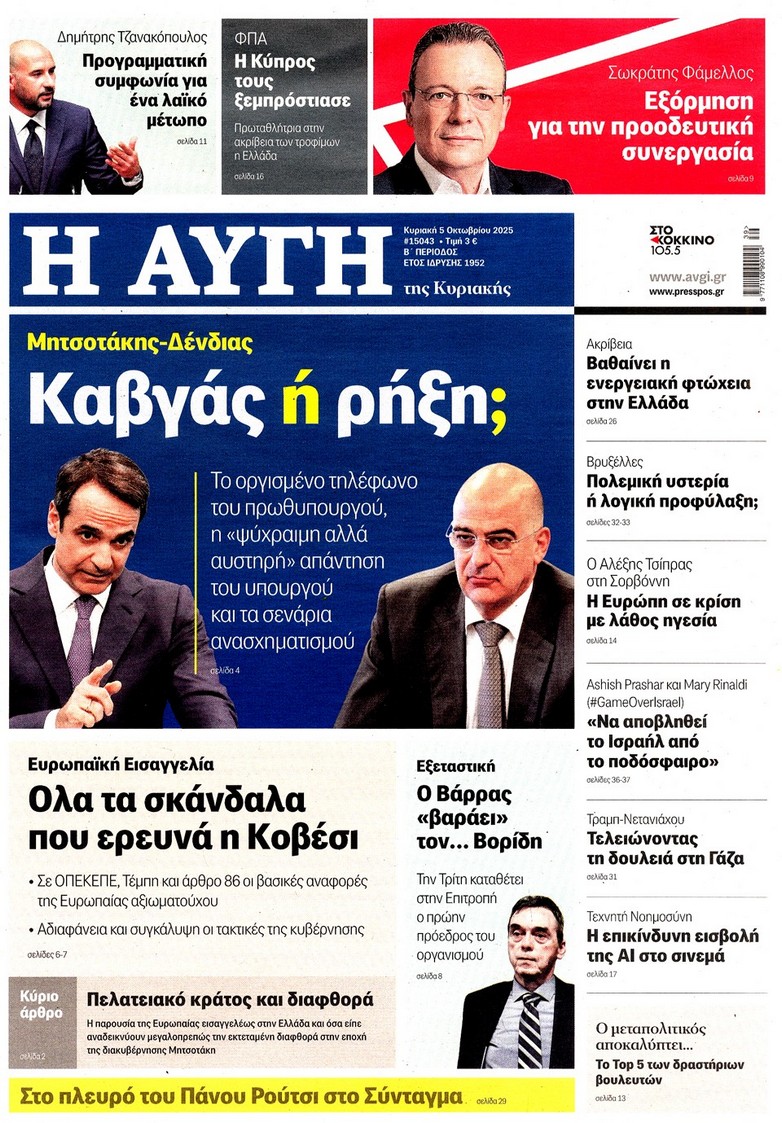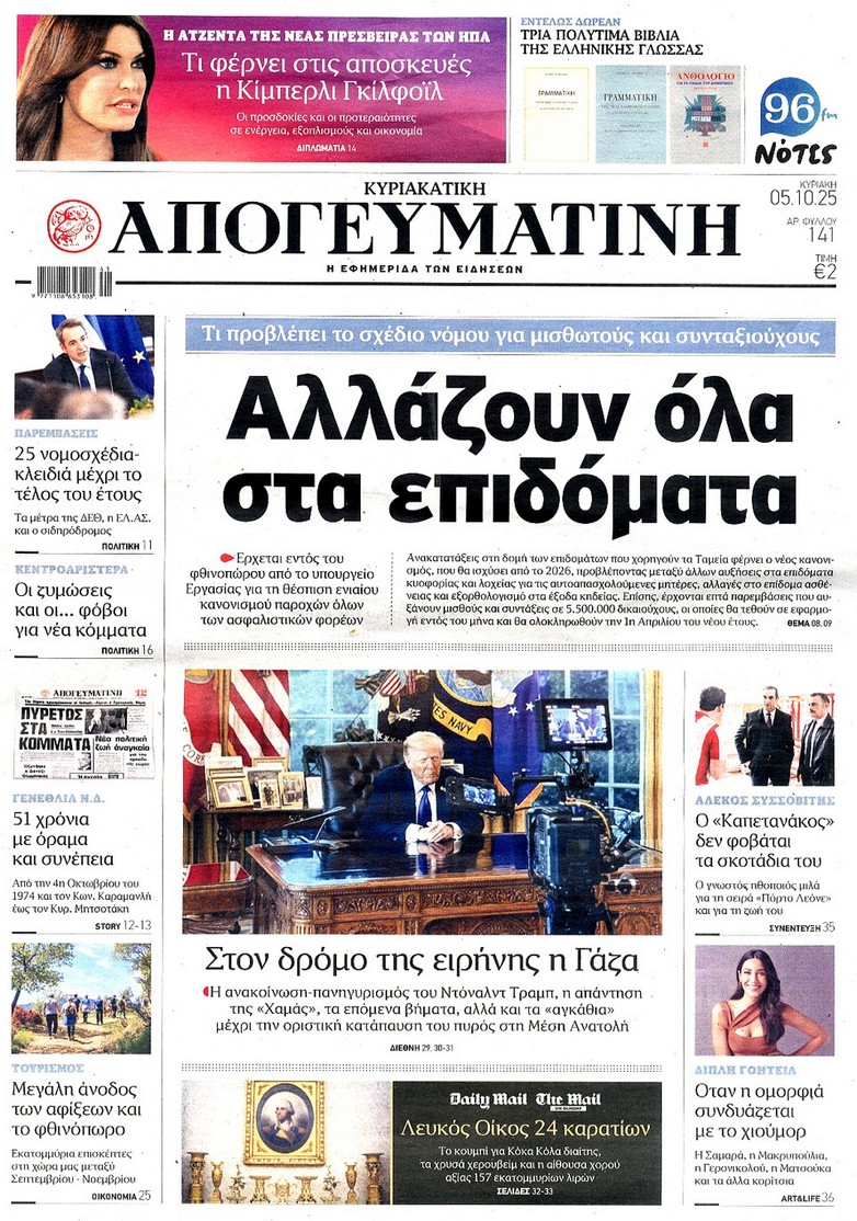 Διαβάστε τα πρωτοσέλιδα των κυριακάτικων εφημερίδων: