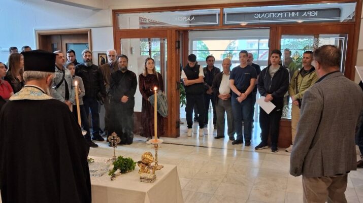 Με την έναρξη του νέου ακαδημαϊκού έτους 2025-2026, πραγματοποιήθηκε το απόγευμα της Τετάρτης 1 Οκτωβρίου 2025, ο Αγιασμός στη Σχολή Βυζαντινής Μουσικής της Ιεράς Μητροπόλεως Λαρίσης και Τυρνάβου “Ο ΑΓΙΟΣ ΑΧΙΛΛΙΟΣ”, στους χώρους του Επισκοπικού Μεγάρου, όπου και η έδρα της Σχολής. Παρουσία πολλών μαθητών, νέων και παλαιών, ο Αιδεσιμολ. Πρωτοπρεσβύτερος π. Βασίλειος Τάσιος, εκπροσωπώντας τον Σεβασμιώτατο Μητροπολίτη Λαρίσης και Τύρναβου κ. Ιερώνυμο, τέλεσε τον Αγιασμό και ανέγνωσε το μήνυμα του Σεβασμιωτάτου για την έναρξη της νέας ακαδημαϊκής χρονιάς.