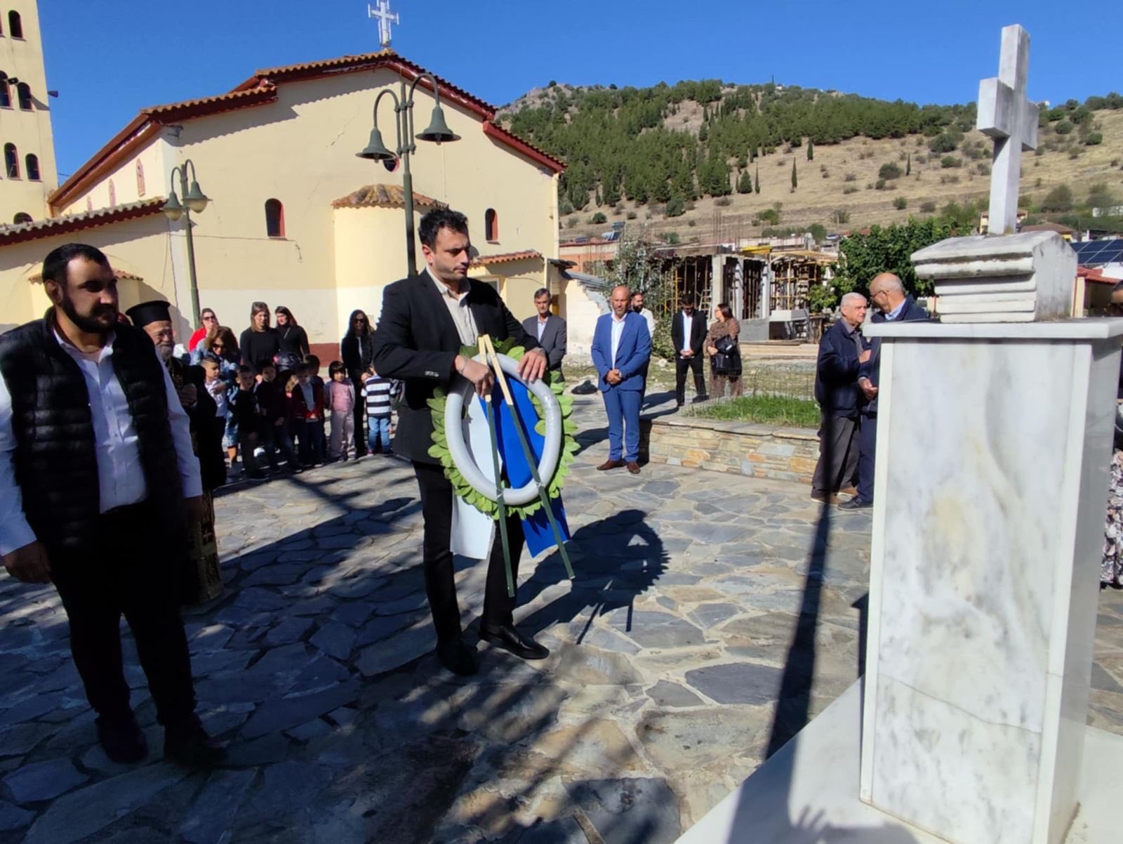 Στο Δαμάσι σήμερα το πρωί τελέστηκε επίσημη δοξολογία στον Ιερό Ναό Αγίου Τρύφωνος, παρουσία των τοπικών αρχών, εκπροσώπων φορέων και συλλόγων και των κατοίκων. Ακολούθησε επιμνημόσυνη δέηση και κατάθεση στεφάνων στο Ηρώο των Πεσόντων, στον προαύλιο χώρο του Ιερού Ναού Αγίου Νικολάου, όπου αποδόθηκαν οι δέουσες τιμές στη μνήμη όσων αγωνίστηκαν και θυσιάστηκαν για την ελευθερία της πατρίδας.