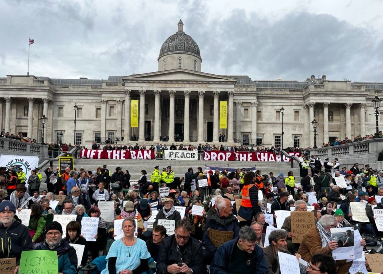 Περιορισμό στις επαναλαμβανόμενες διαδηλώσεις ανακοινώνει η βρετανική κυβέρνηση, μία ημέρα μετά τη σύλληψη σχεδόν πεντακοσίων διαδηλωτών στο Λονδίνο , στην πλατεία Τραφάλγκαρ , κατά την διάρκεια της σιωπηλής φιλοπαλαιστινιακής διαμαρτυρίας.