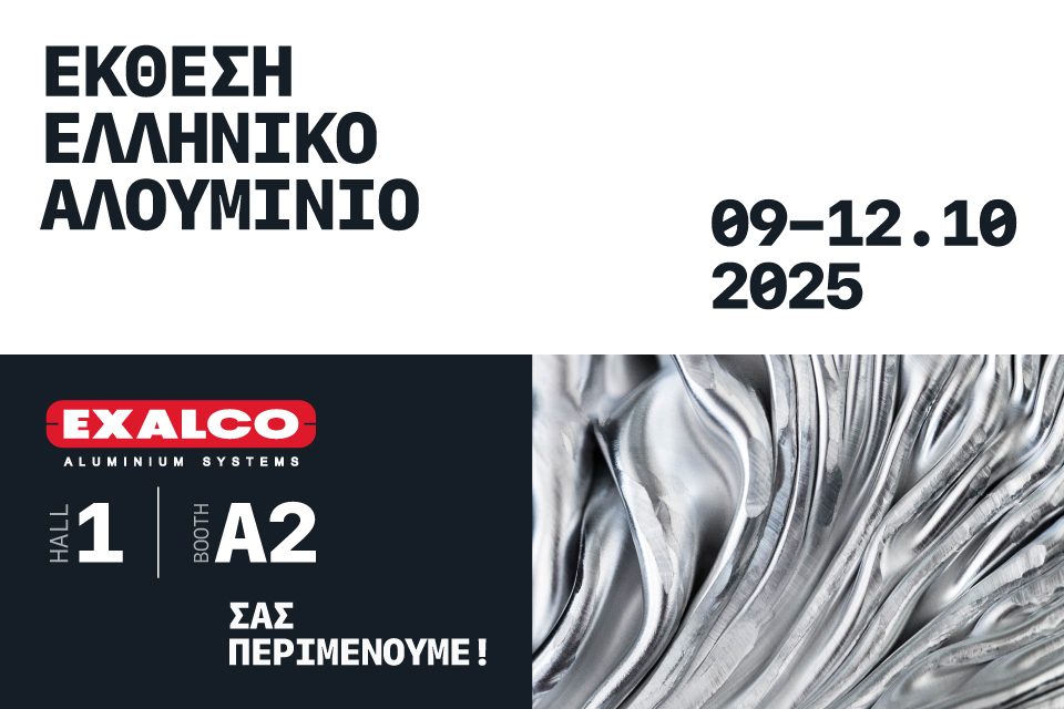 Η EXALCO συμμετέχει στη μεγαλύτερη κλαδική έκθεση, «ΕΛΛΗΝΙΚΟ ΑΛΟΥΜΙΝΙΟ 2025», η οποία θα πραγματοποιηθεί από 9 έως 12 Οκτωβρίου 2025 στο Metropolitan Expo στην Αθήνα.