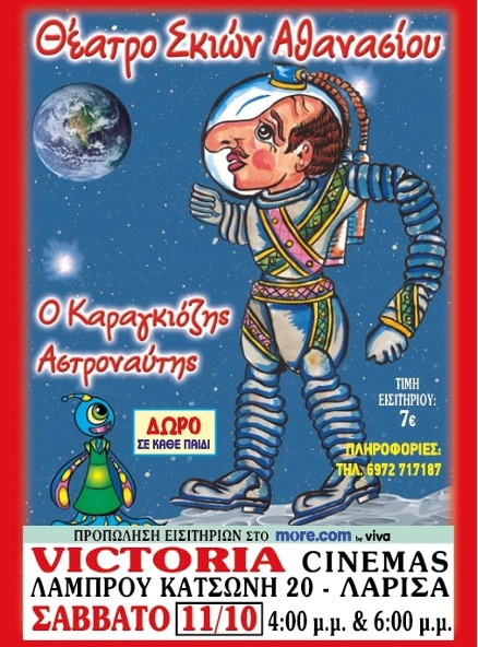 Το Σάββατο 11 Οκτωβρίου, ο Καραγκιόζης Αστροναύτης ανεβαίνει στη σκηνή του Victoria Cinemas για δύο μοναδικές παραστάσεις στις 4:00 μ.μ. και 6:00 μ.μ.