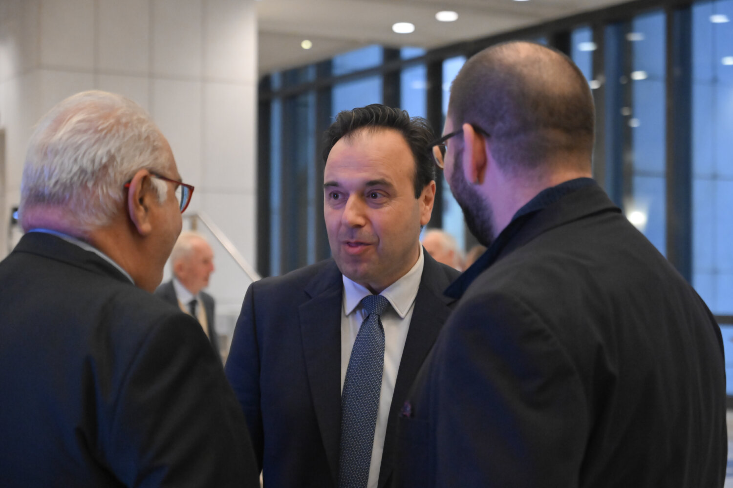 Ο Διοικητής της ΤτΕ, Γιάννης Στουρνάρας με τον εκδότη της larissanet, Xρήστο Μπεχλιβάνο και την διευθύντρια του ΣΘΕΒ, Έλενα Καματέρη,