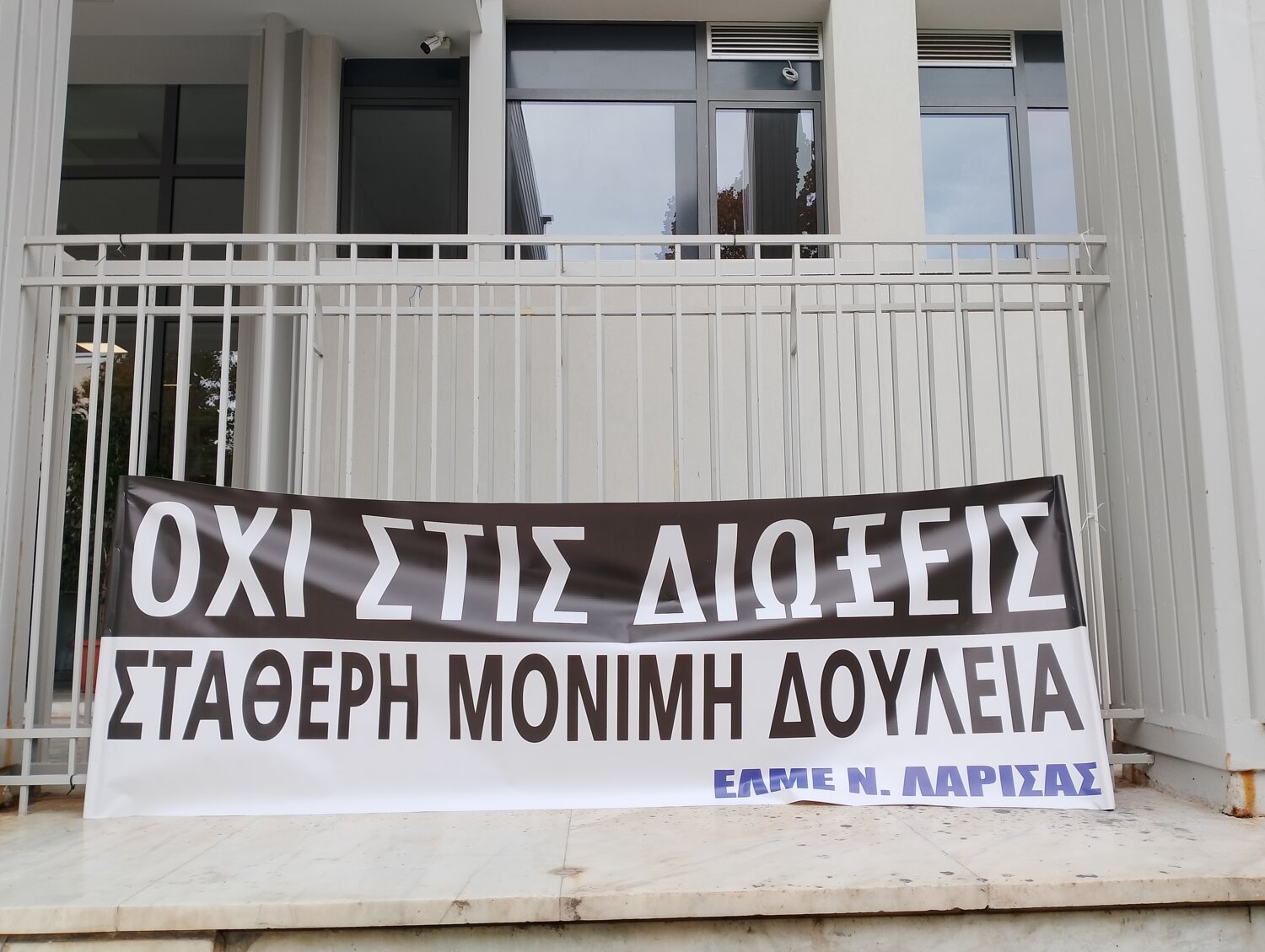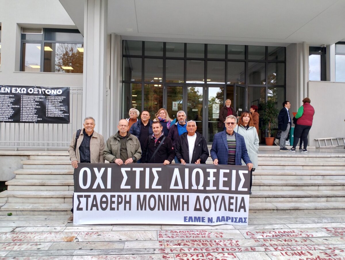 Συγκέντρωση διαμαρτυρίας πραγματοποίησε έξω από το Δικαστικό Μέγαρο Λάρισας αντιπροσωπεία της ΕΛΜΕ ν. Λάρισας με αφορμή την εξέταση της προσφυγής στο Διοικητικό Πρωτοδικείο Λάρισας νεοδιοριστων εκπαιδευτικών για μονιμοποίηση ταυτόχρονα με την αίτηση ανάκλησης απόφασης με την οποία καθαιρέθηκε Διευθύντρια σχολικής μονάδας που αρνήθηκε να εφαρμόσει την αξιολόγηση.