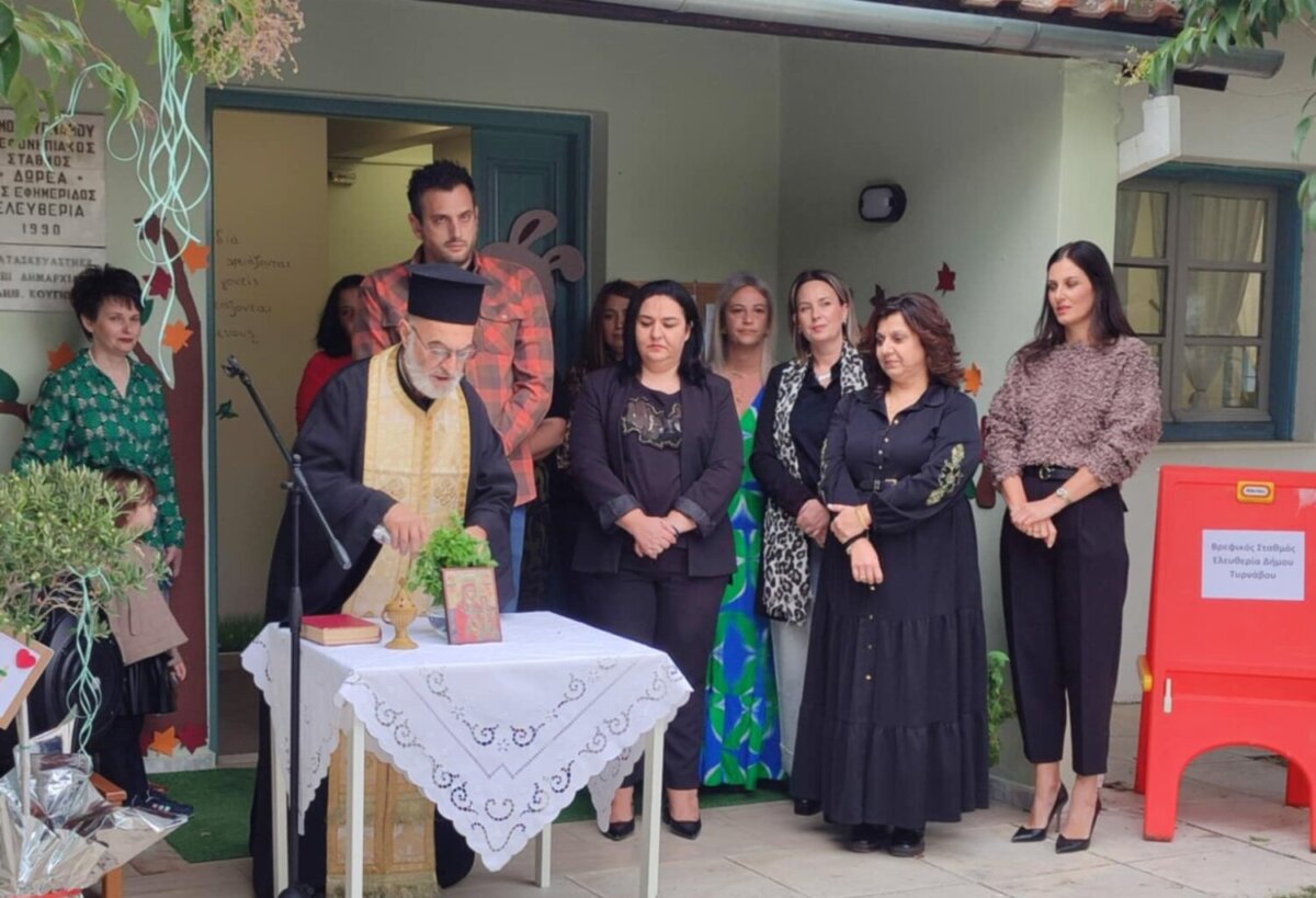 Πραγματοποιήθηκαν χθες, Τετάρτη 8 Οκτωβρίου, τα εγκαίνια του νέου Βρεφικού Σταθμού «Ελευθερία» στον Τύρναβο, παρουσία γονέων, παιδιών, εκπαιδευτικού προσωπικού, του Δημάρχου Στέλιου Τσικριτσή και εκπροσώπων της δημοτικής αρχής.