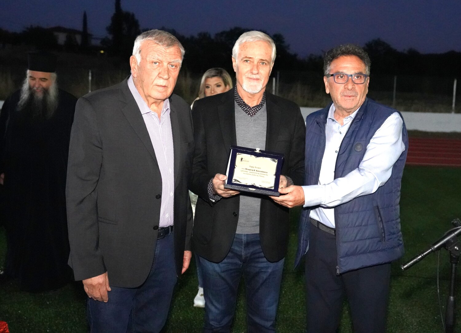 Μετά το πέρας της τελετής ο Δήμαρχος απένειμε τιμητική πλακέτα στον γυμναστή Θεοφάνη Κουλιόπουλο ο οποίος οραματίστηκε και πρωτοστάτησε πριν από χρόνια στην κατασκευή του γηπέδου.