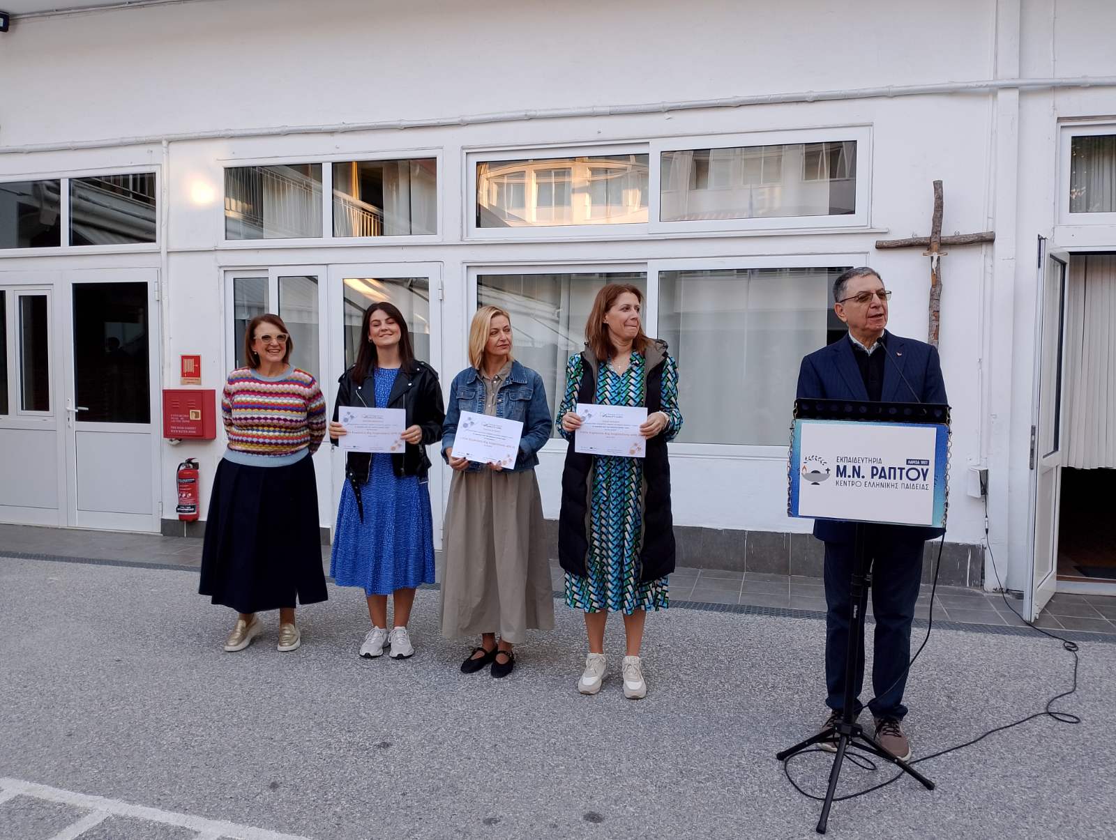 Το Νηπιαγωγείο των Εκπαιδευτηρίων Μ. Ν. Ράπτου τιμήθηκε από τον πρόεδρο των Εκπαιδευτηρίων, κ. Νικόλαο Ράπτη, για τη συμμετοχή και την ουσιαστική του συμβολή στο καινοτόμο ευρωπαϊκό πρόγραμμα eTwinning «Μικροί Εξερευνητές, Μεγάλες Εμπνεύσεις με τη AI».