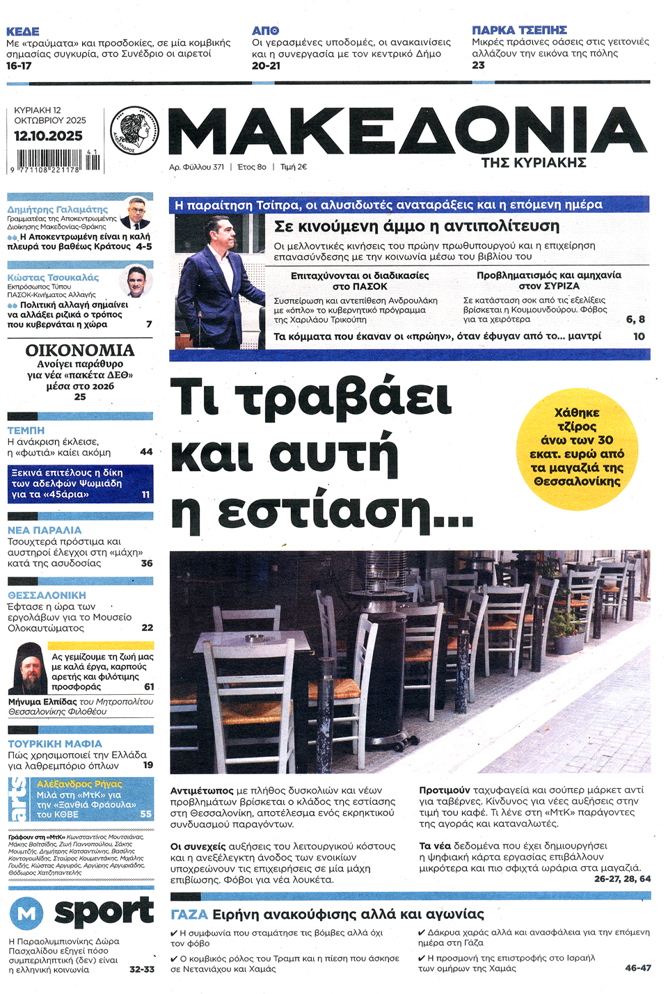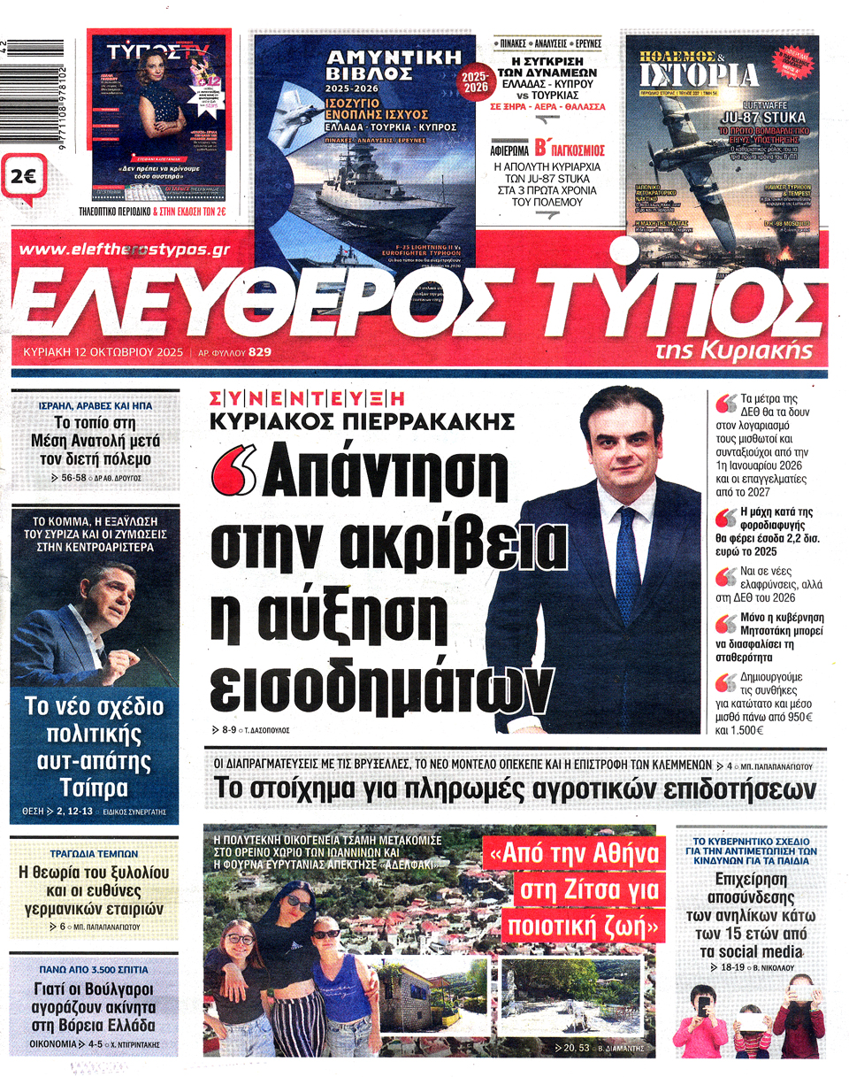 Οι κινήσεις Τραμπ για τη συμφωνία κατάπαυσης του πυρός στη Γάζα, τα επόμενα βήματα του Αλέξη Τσίπρα και οι πρωτοβουλίες της κυβέρνησης για την καταπολέμηση της ακρίβειας ξεχωρίζουν στα πρωτοσέλιδα των κυριακάτικων εφημερίδων.