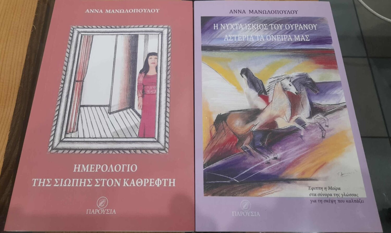 Η Άννα Μανωλοπούλου έχει τη δική της πορεία στην λογοτεχνία της Λάρισας. Με αφορμή την παρουσίαση των δύο νέων της βιβλίων, «Η Νύχτα Ίσκιος του Ουρανού – Αστέρια τα όνειρά μας» και «Ημερολόγιο της Σιωπής – Στον καθρέφτη», από τις εκδόσεις «Παρουσία», η κα Μανωλοπούλου μας παραχώρησε συνέντευξη που «ξεχειλίζει» από ποίηση και συγκίνηση.
