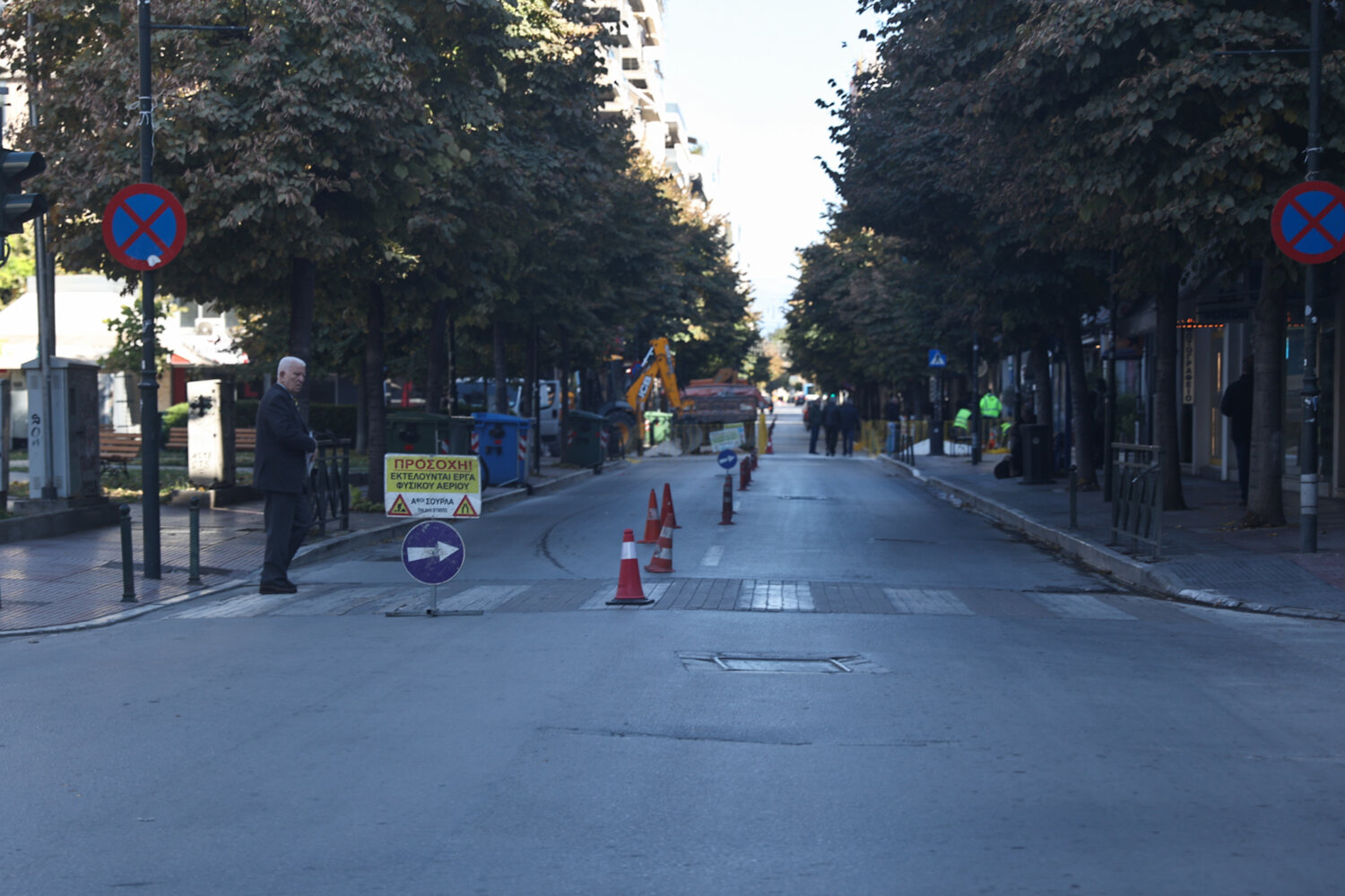 Συνεχίζονται τα έργα επί της οδού Παπαναστασίου στη Λάρισα.