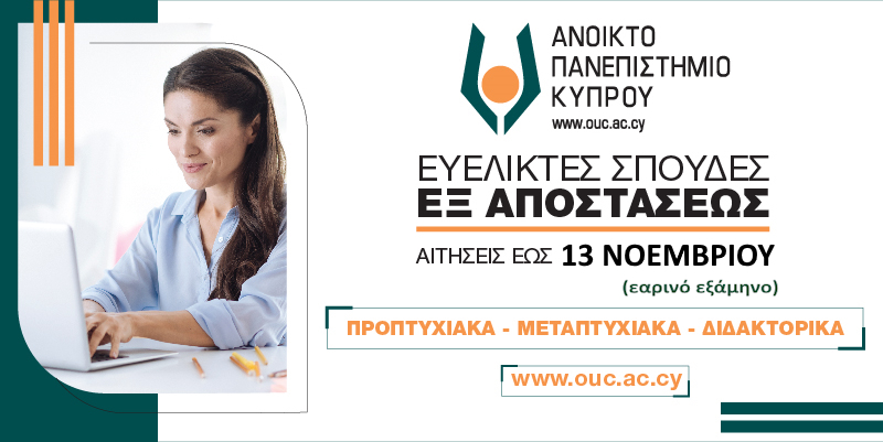 Αιτήσεις εισδοχής με έναρξη φοίτησης το εαρινό εξάμηνο του ακαδημαϊκού έτους 2025-2026 έως 13 Νοεμβρίου 2026, μόνο ηλεκτρονικά στην ιστοσελίδα μας www.ouc.ac.cy