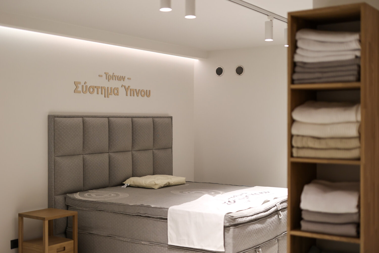Δηλαδή ξεκινώντας από τη βάση, μπορείς να χτίσεις ένα κρεβάτι το οποίο μπορεί να φτάσει έως και τέσσερις στρώσεις από προϊόντα, για να οδηγηθούμε έτσι στον καλύτερο δυνατό ύπνο. Το τετραπλό αυτό σύστημα θεωρείται ιδανικό και προσφέρει στον πελάτη την αίσθηση του απύθμενου. Αυτό σημαίνει ότι όσο ξαπλώνεις δεν νιώθεις κάποιο πάτο. Είναι σαν να βρίσκεσαι σε ένα σύννεφο και αιωρείσαι.
