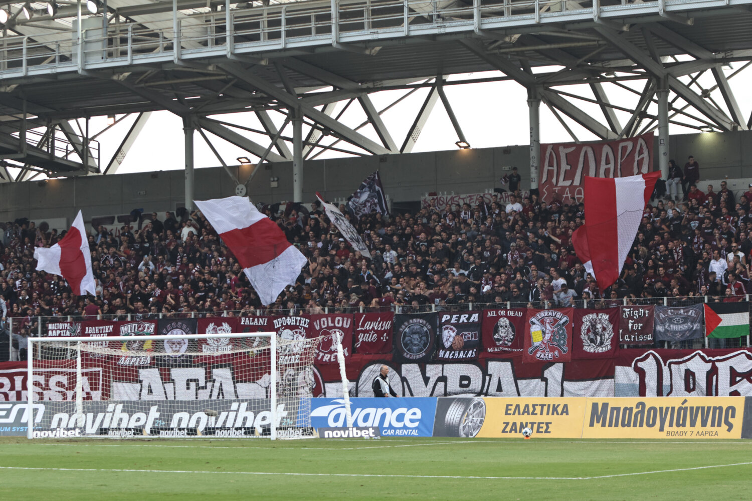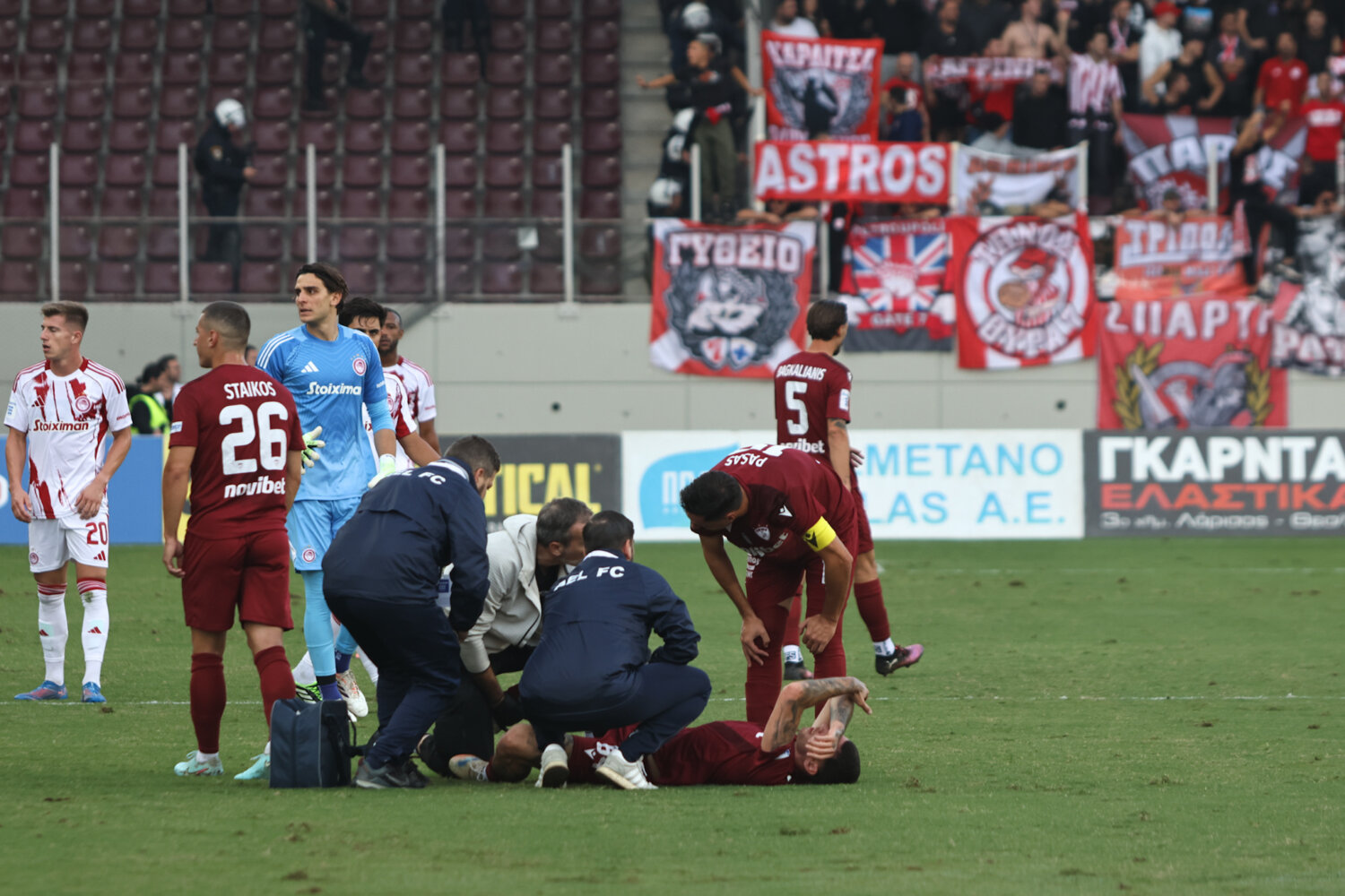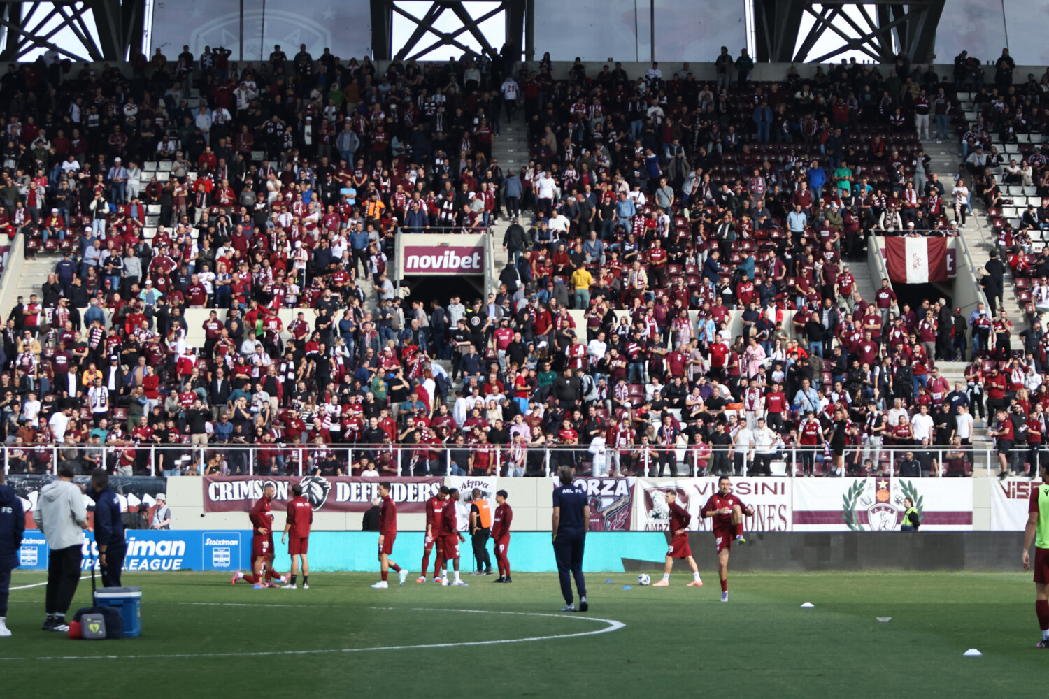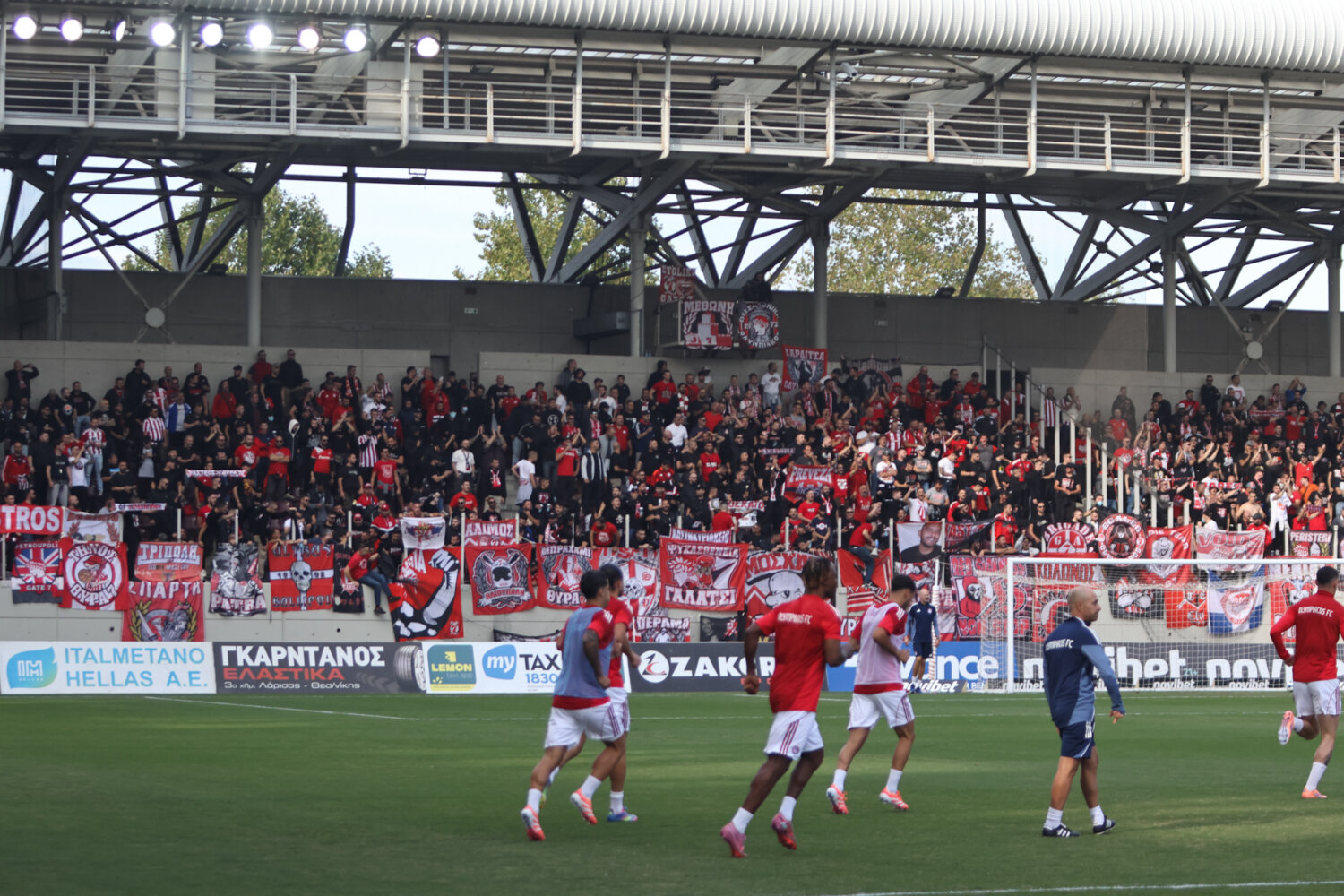 Στο γήπεδο παρόλα αυτά οι φίλαθλοι της ΑΕΛ ενθάρρυνα την ομάδα εδώ στο ένα πέταλο βρίσκονταν και φίλαθλοι του Ολυμπιακού.
