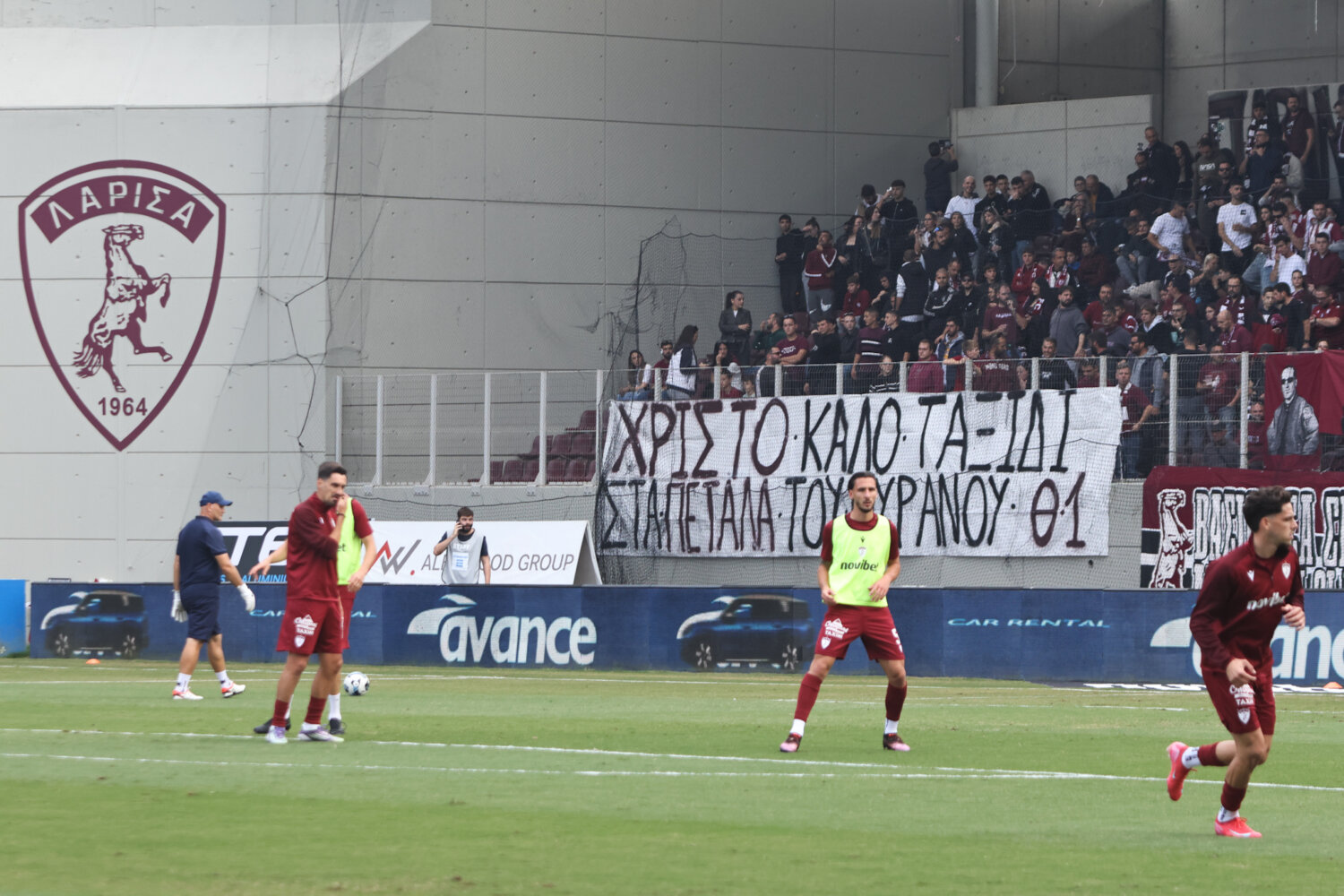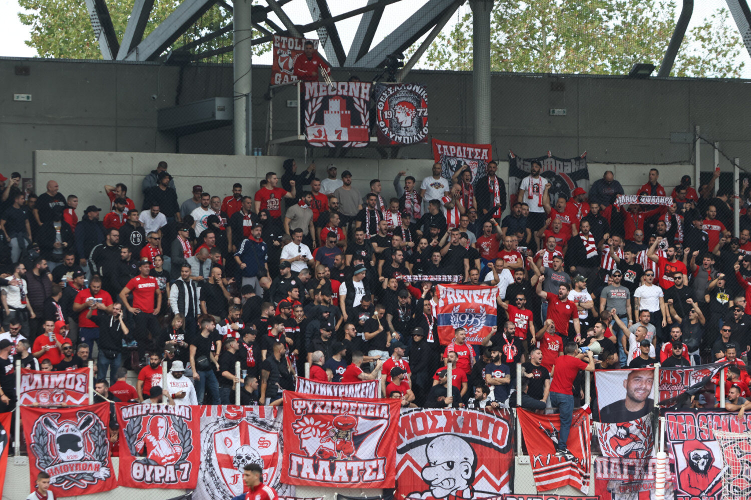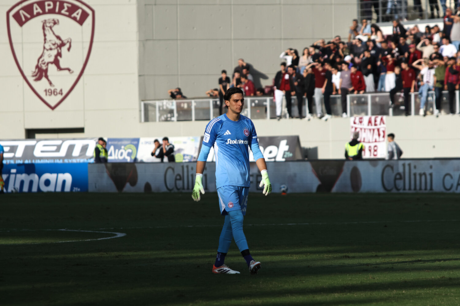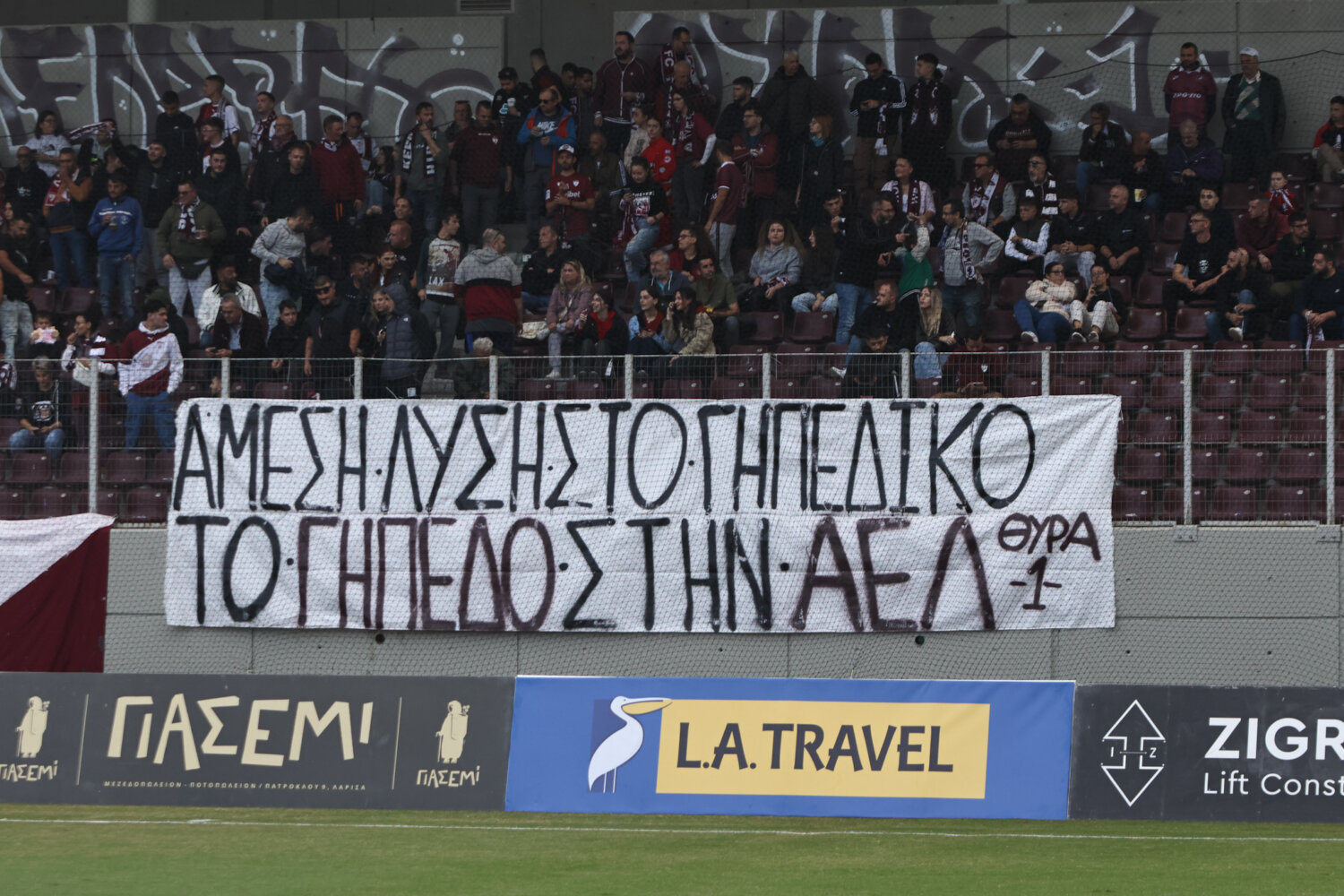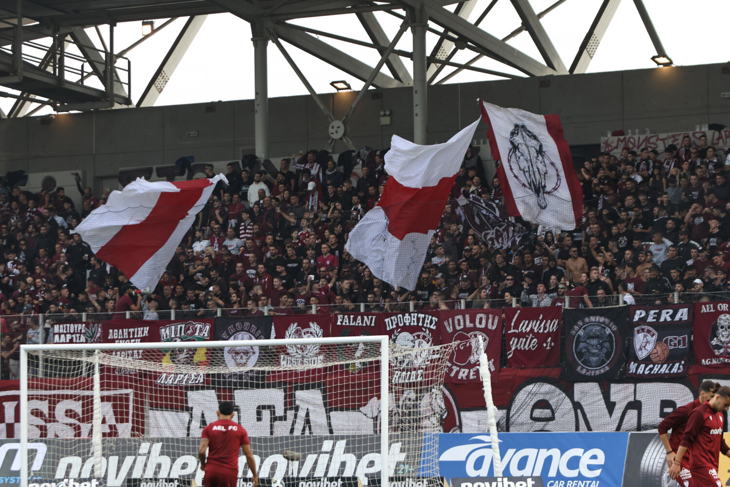 Στο γήπεδο παρόλα αυτά οι φίλαθλοι της ΑΕΛ ενθάρρυνα την ομάδα εδώ στο ένα πέταλο βρίσκονταν και φίλαθλοι του Ολυμπιακού.