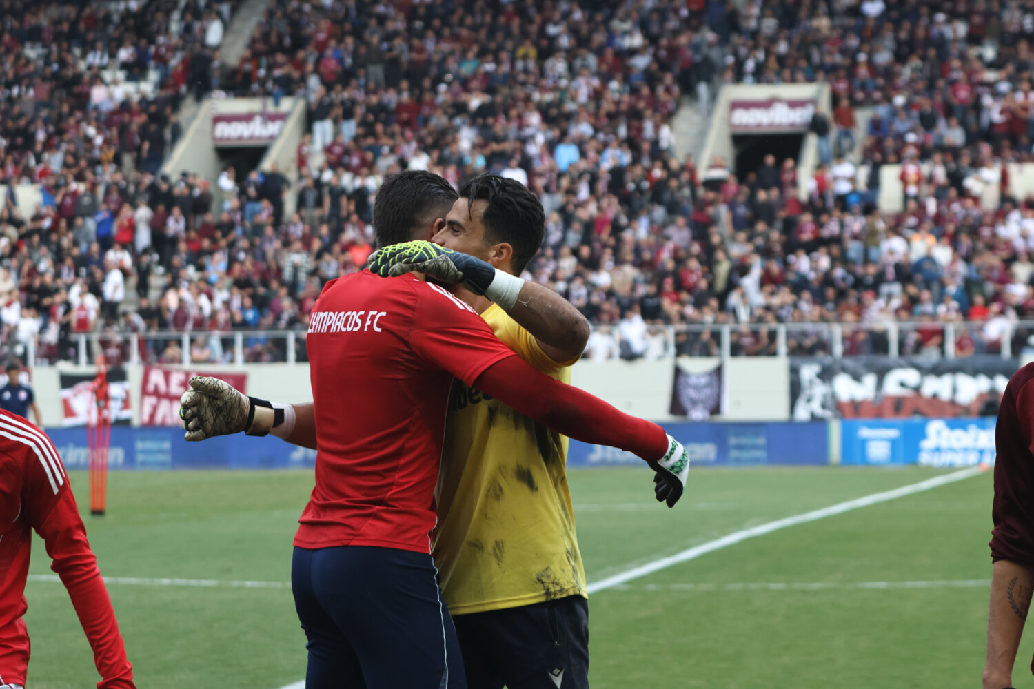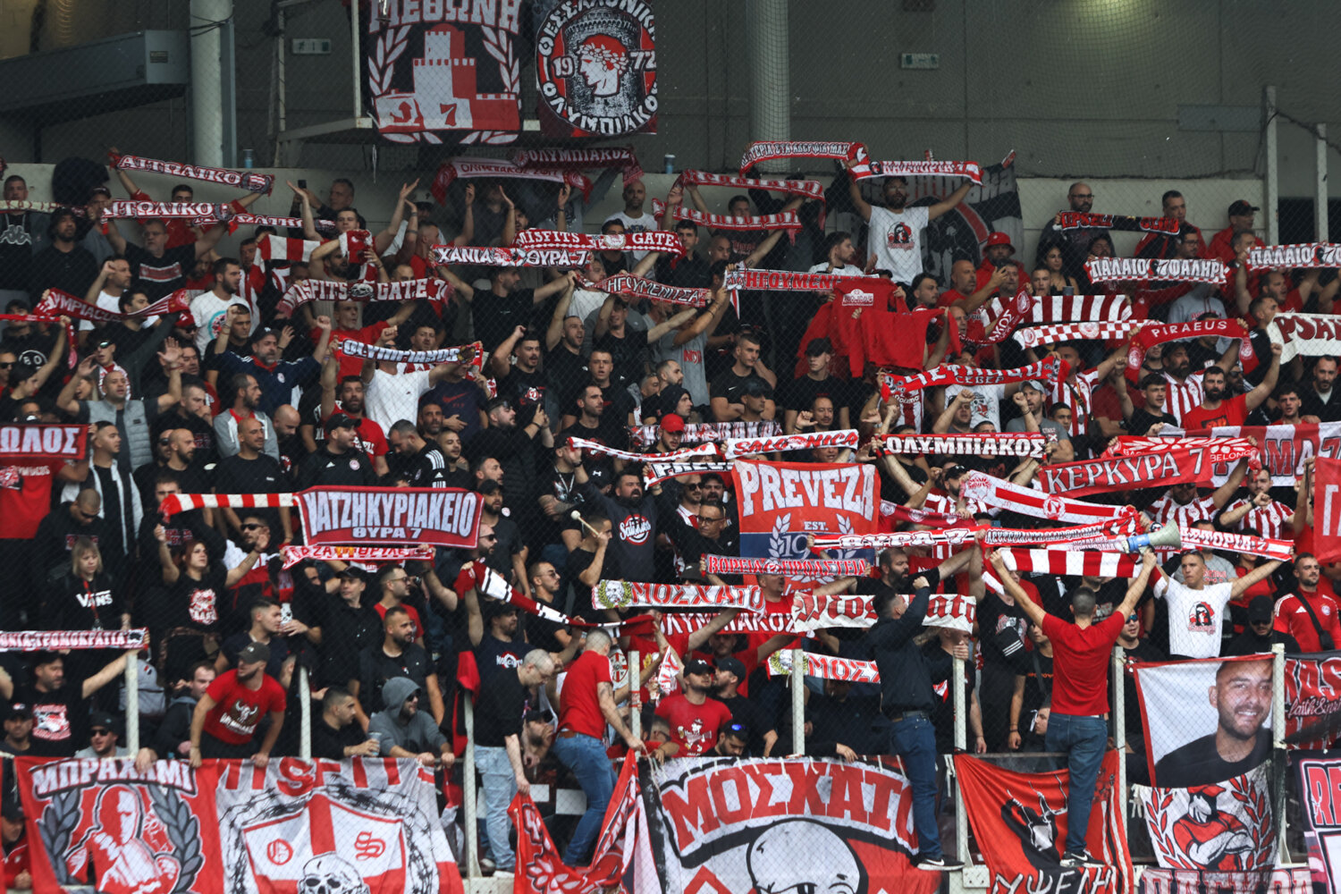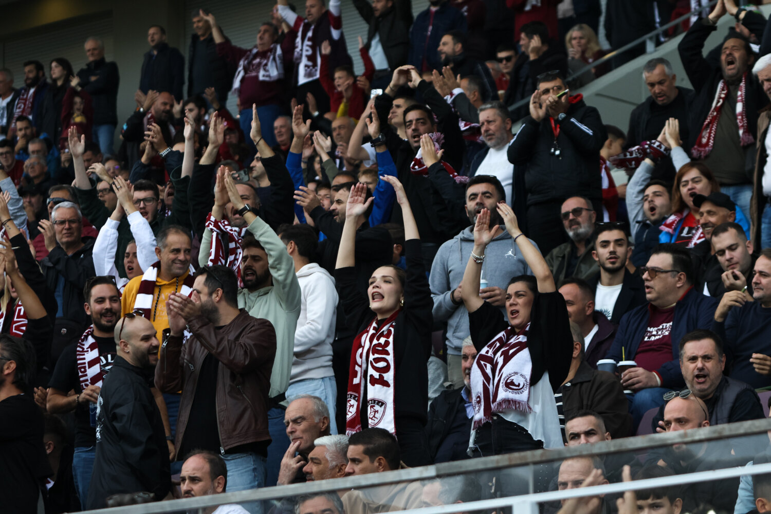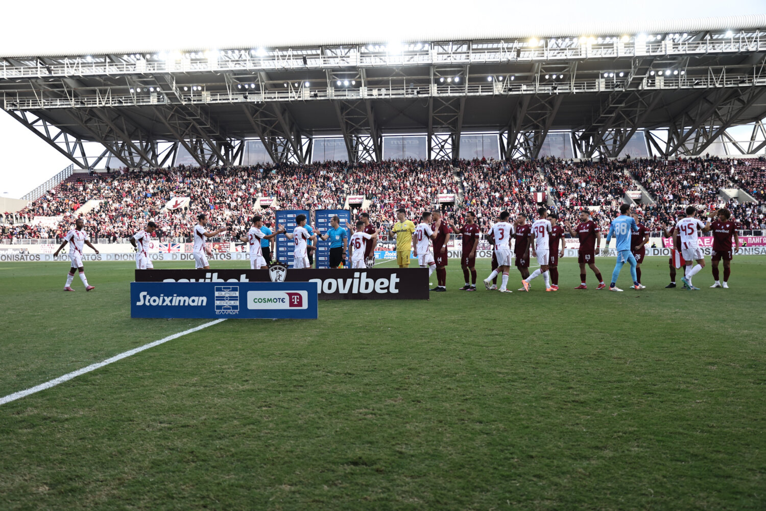 Στο γήπεδο παρόλα αυτά οι φίλαθλοι της ΑΕΛ ενθάρρυνα την ομάδα εδώ στο ένα πέταλο βρίσκονταν και φίλαθλοι του Ολυμπιακού.